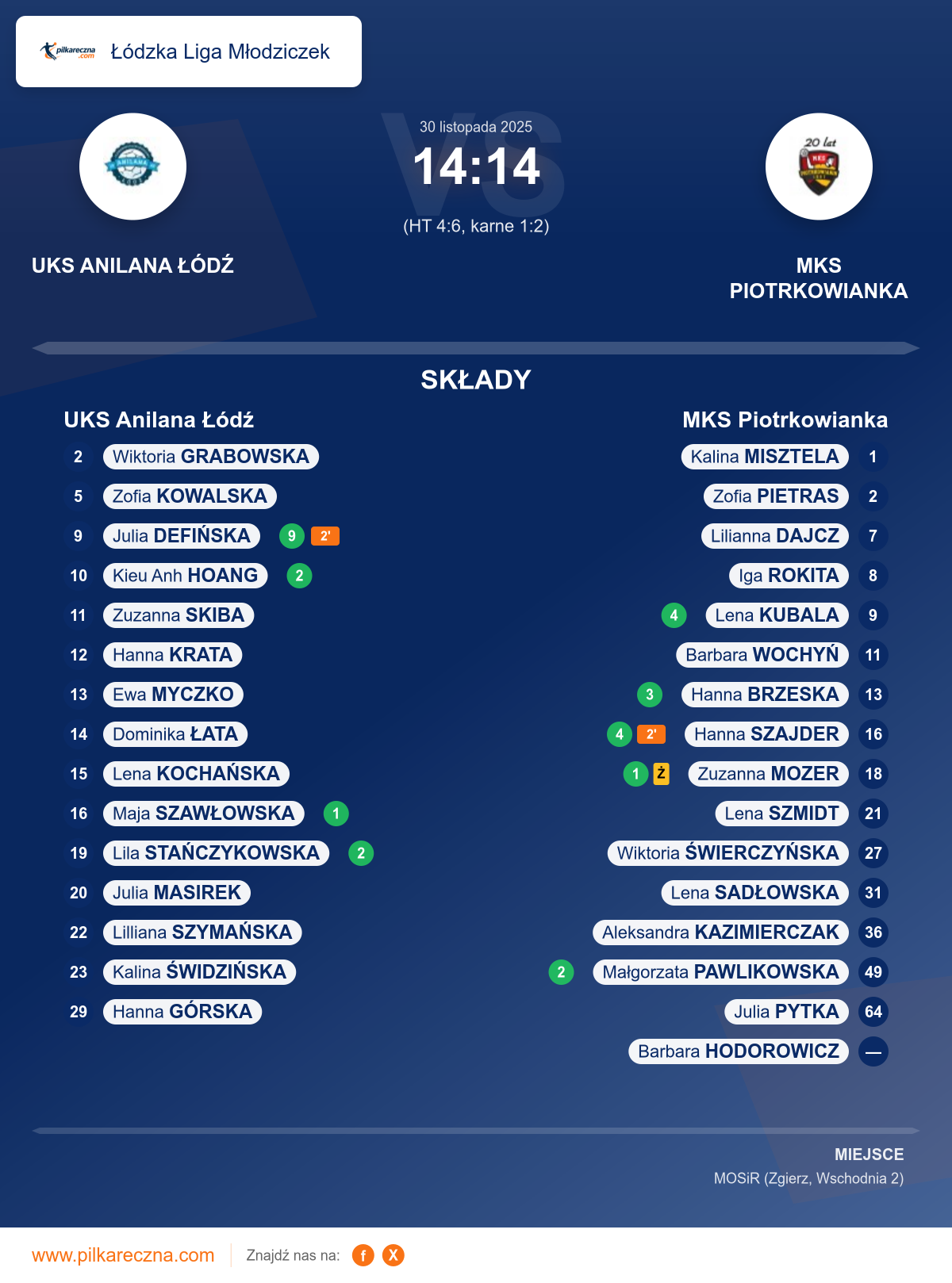 UKS Anilana Łódź 14–14 MKS Piotrkowianka