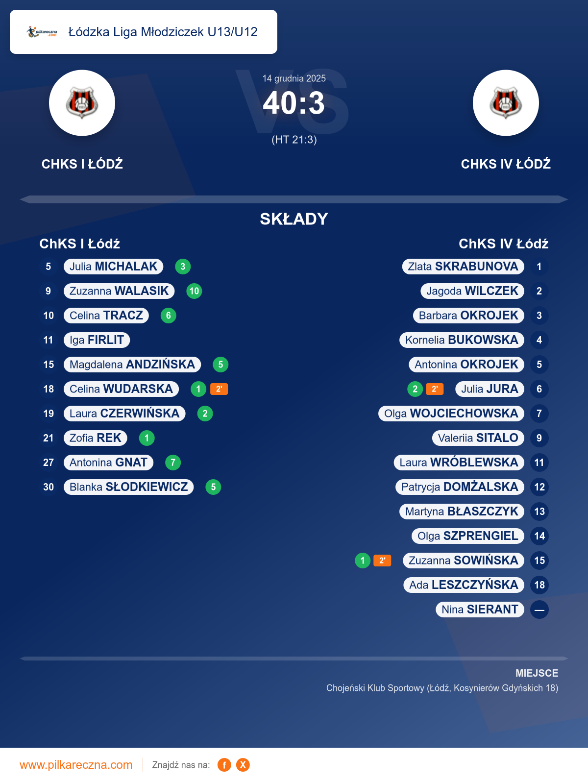 ChKS I Łódź 40–3 ChKS IV Łódź