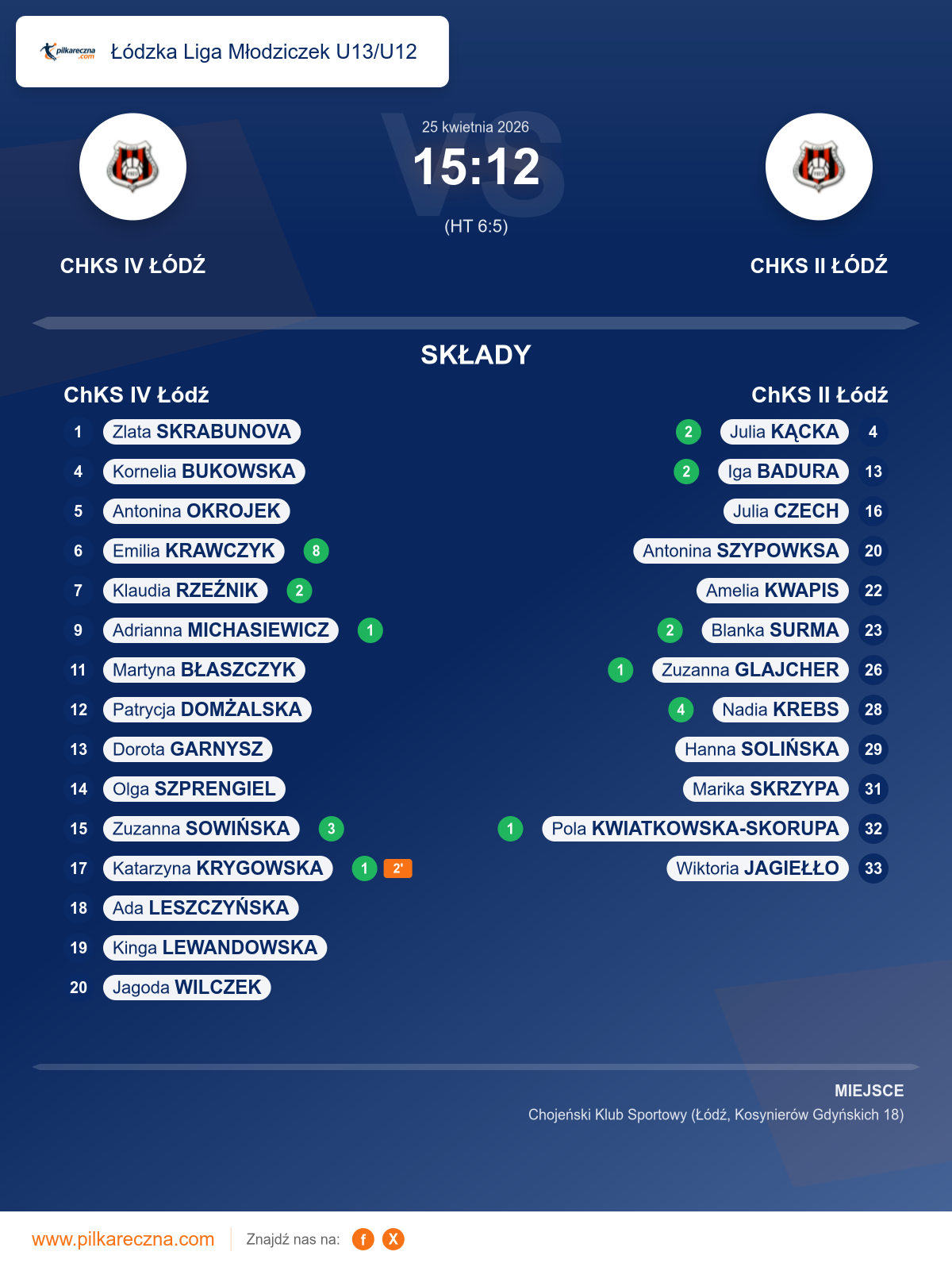 Zawodnicy: Nadia Krebs (4), Blanka Surma (2), Iga Badura (2), Julia Kącka (2), Pola Kwiatkowska-skorupa (1), Zuzanna Glajcher (1), Antonina Szypowksa, Hanna Solińska, Marika Skrzypa, Wiktoria Jagiełło