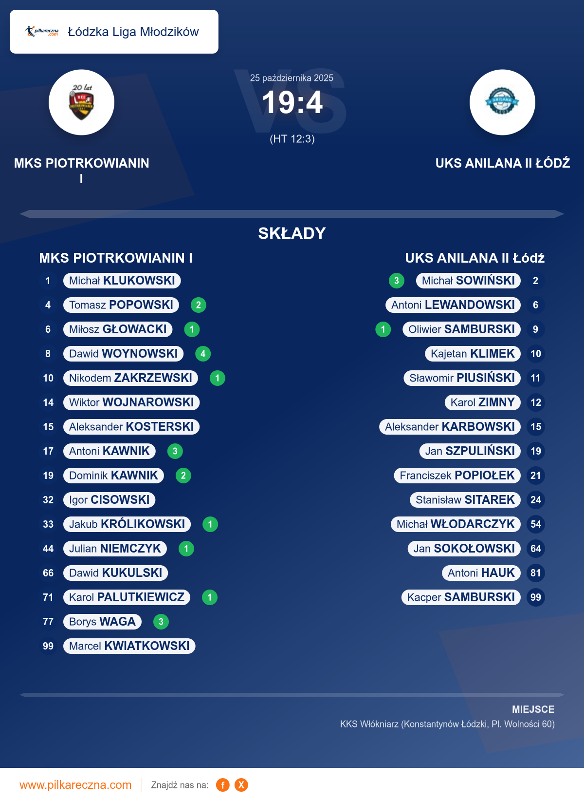 MKS PIOTRKOWIANIN I — UKS ANILANA II Łódź