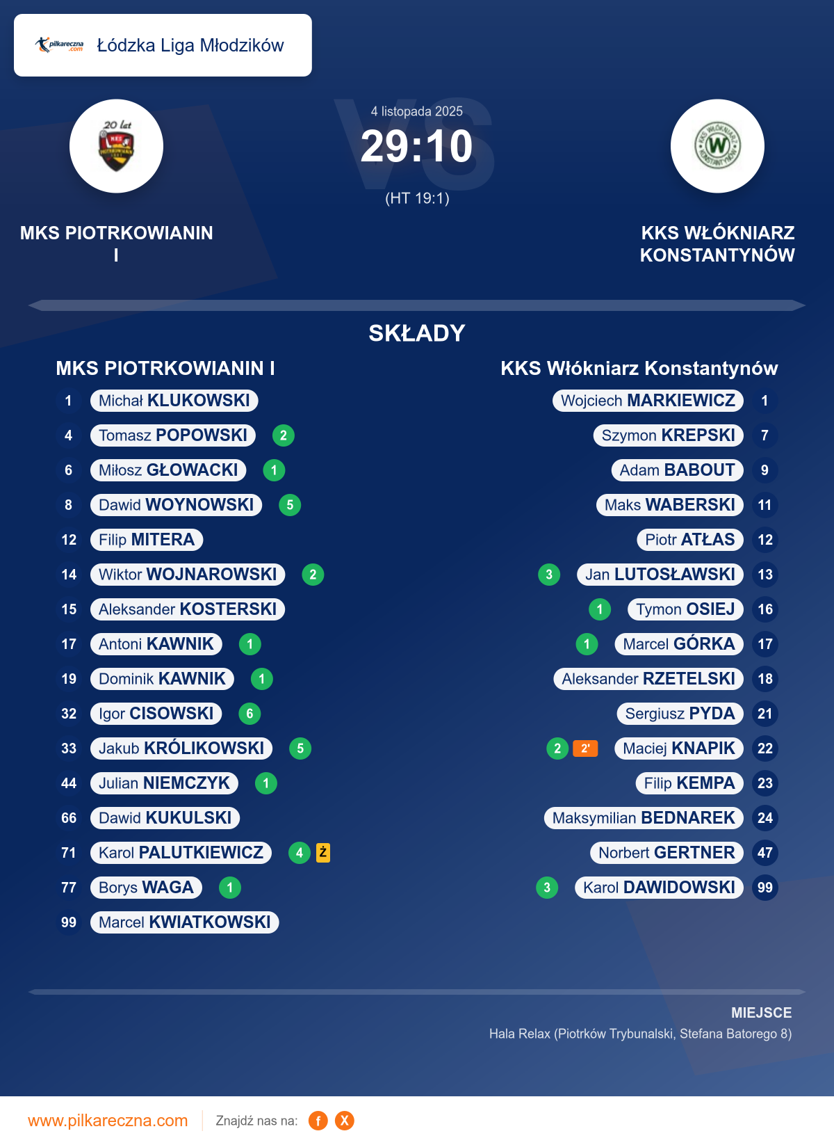 Bramkarze: Michał Klukowski, Marcel Kwiatkowski, Filip Mitera