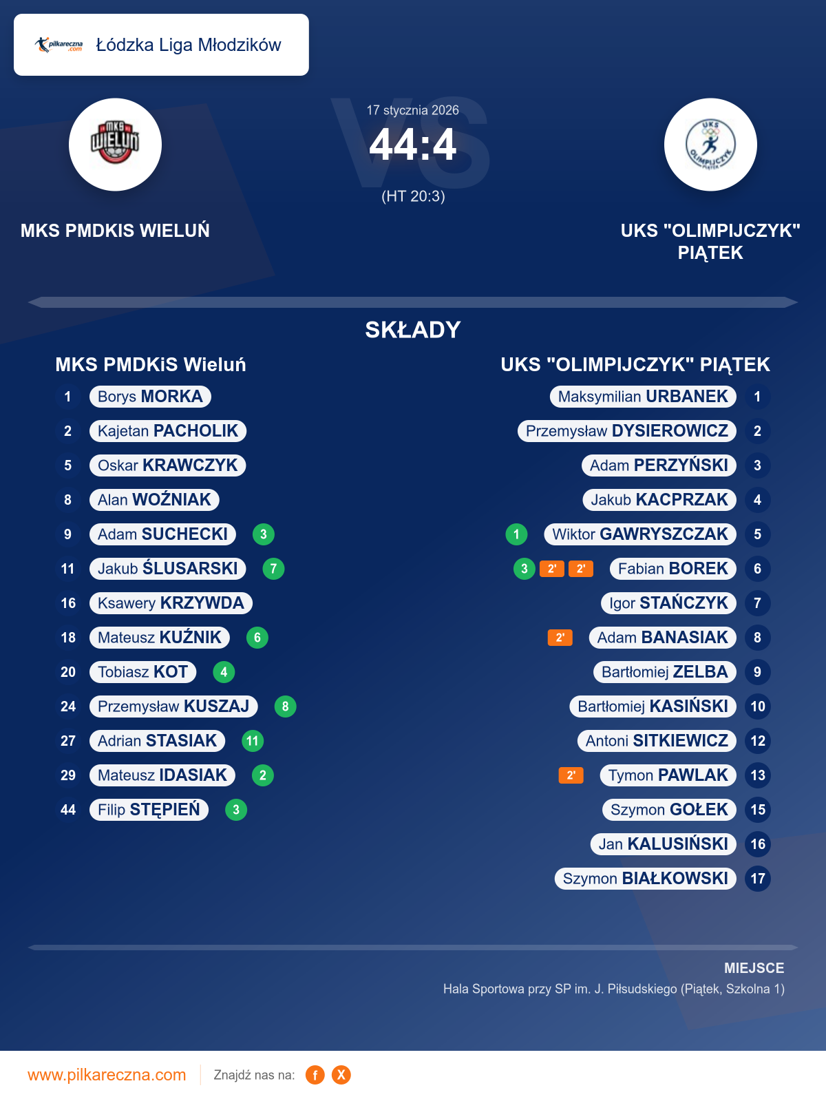 MKS PMDKiS Wieluń 44–4 UKS "OLIMPIJCZYK" PIĄTEK