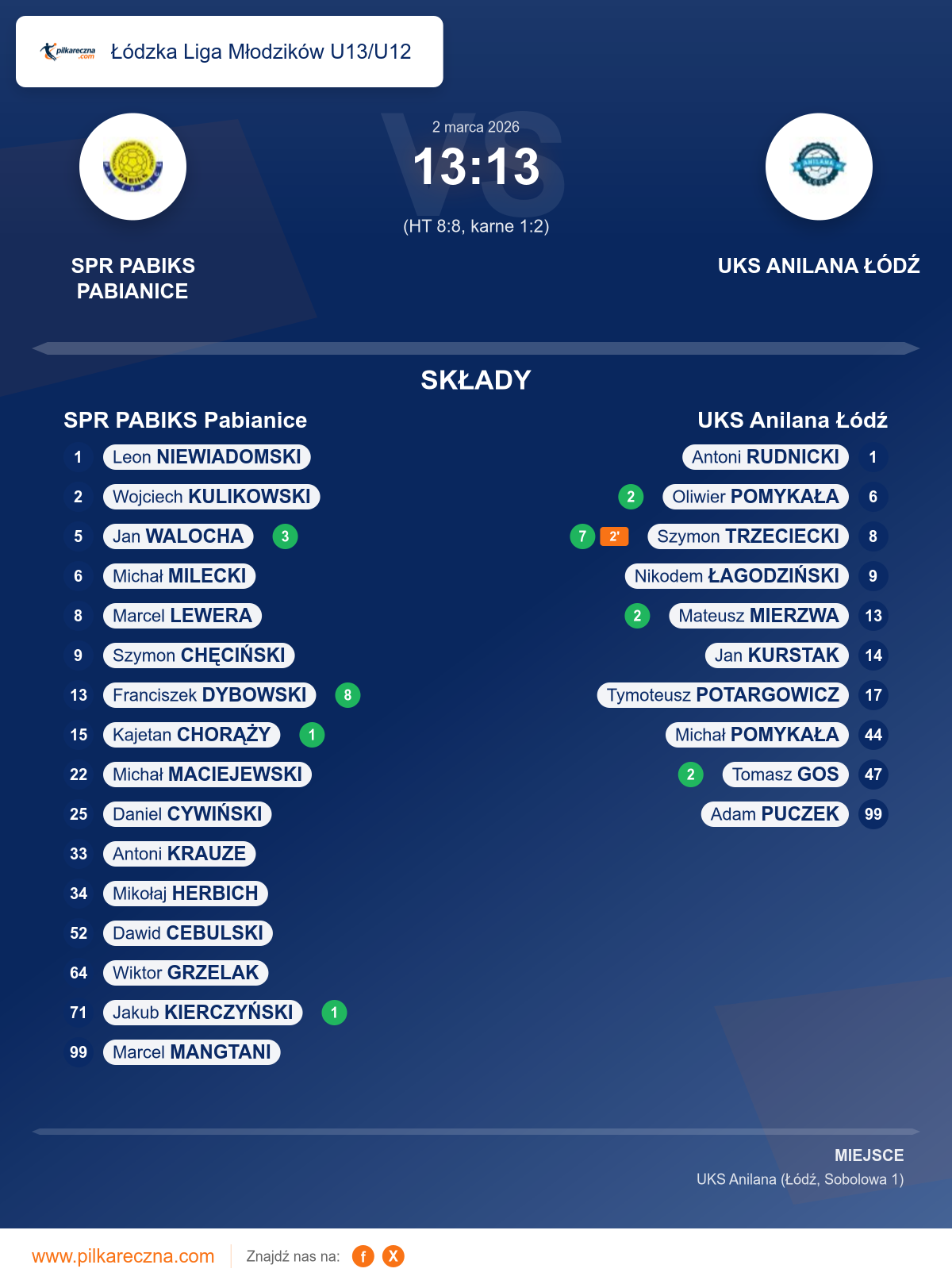 SPR PABIKS Pabianice 13–13 UKS Anilana Łódź