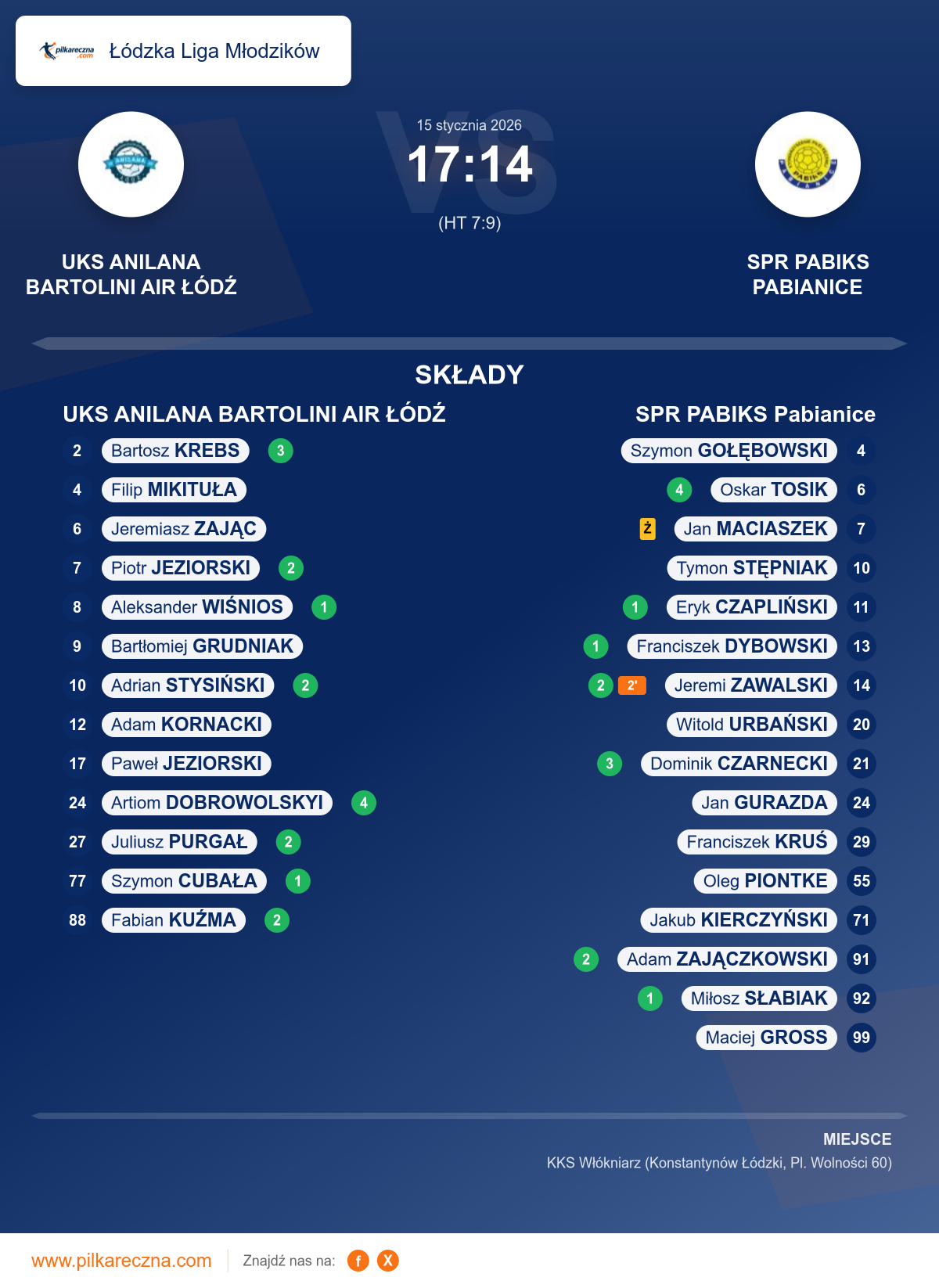 UKS ANILANA BARTOLINI AIR ŁÓDŹ 17–14 SPR PABIKS Pabianice