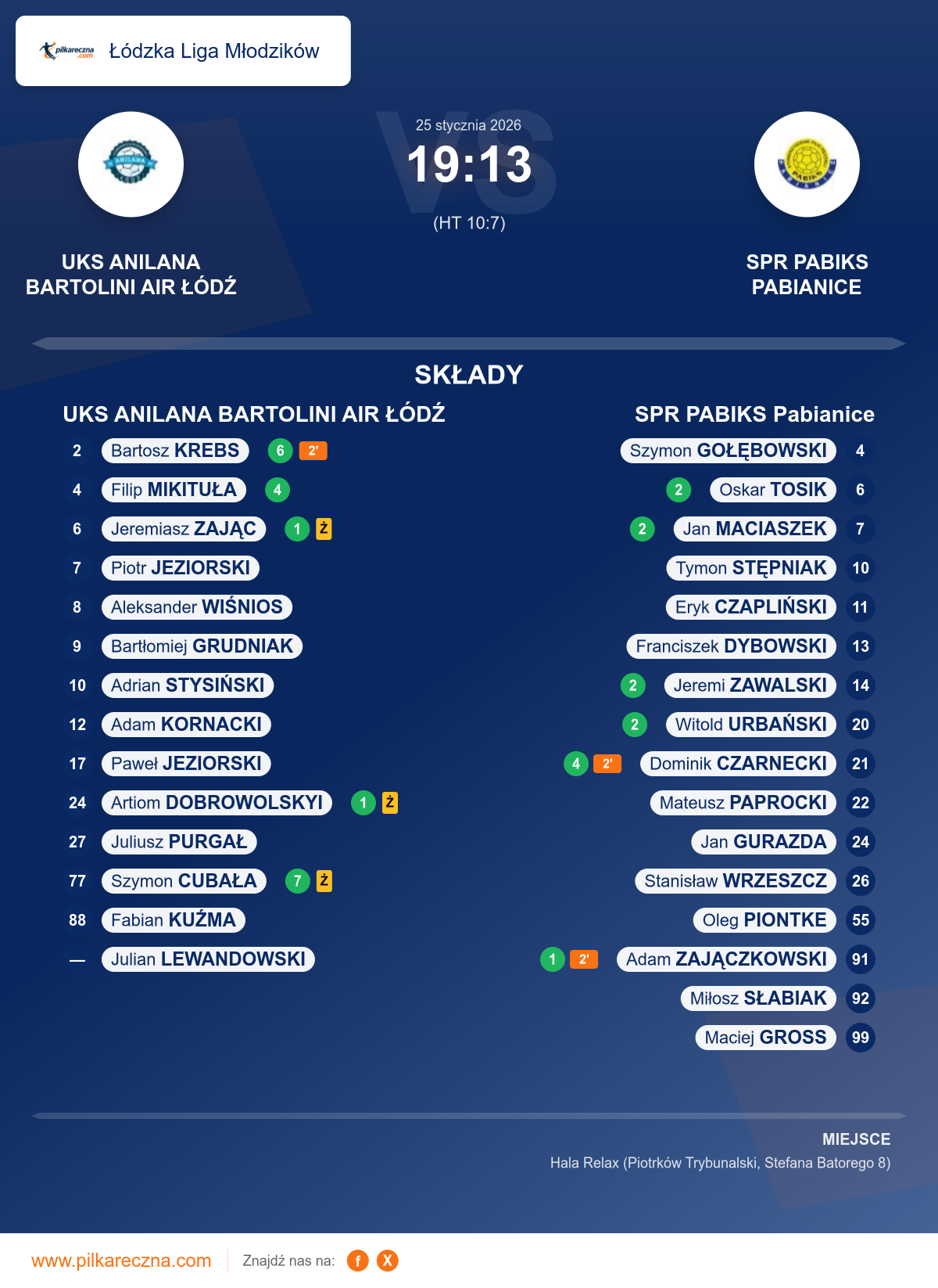 UKS ANILANA BARTOLINI AIR ŁÓDŹ 19–13 SPR PABIKS Pabianice