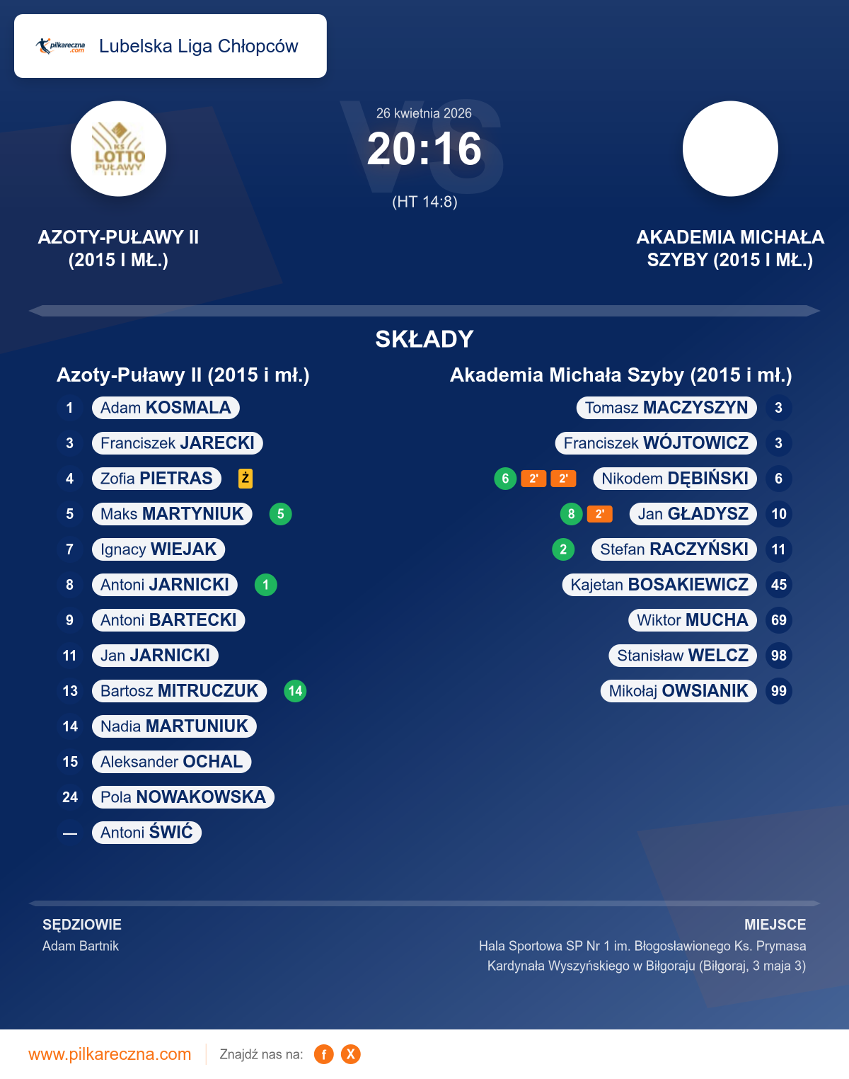 Azoty-Puławy II (2015 i mł.) 20–16 Akademia Michała Szyby (2015 i mł.)