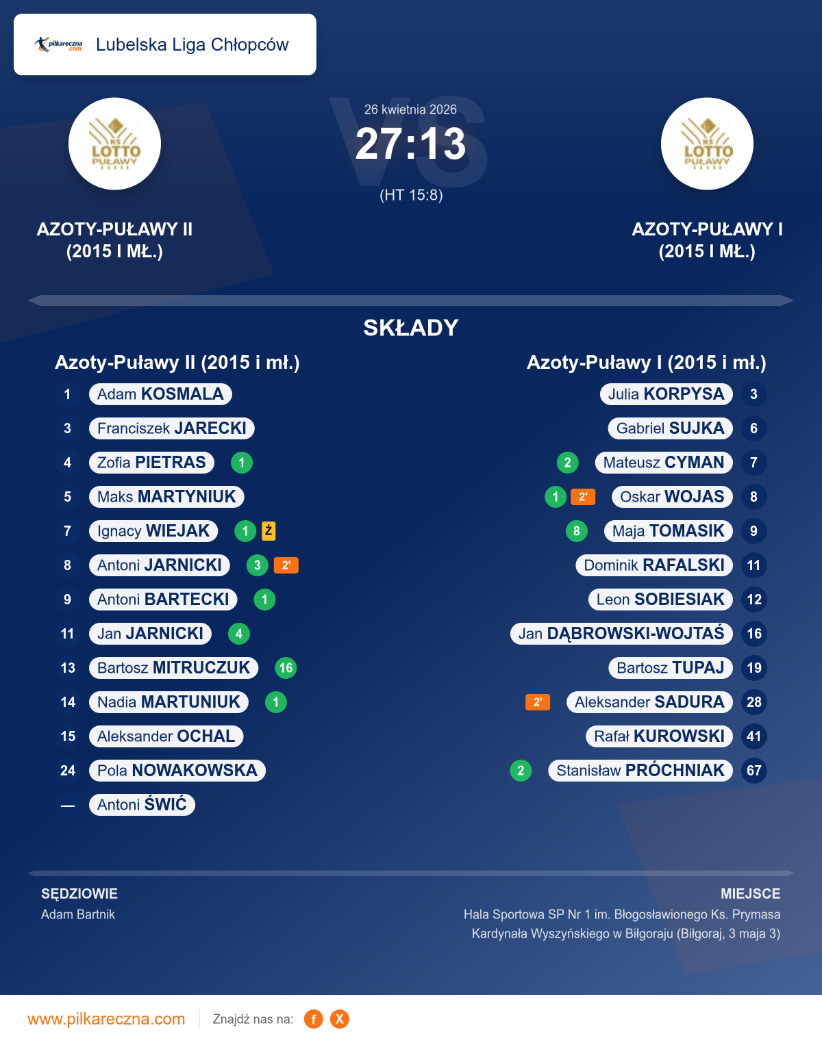 Azoty-Puławy II (2015 i mł.) 27–13 Azoty-Puławy I (2015 i mł.)