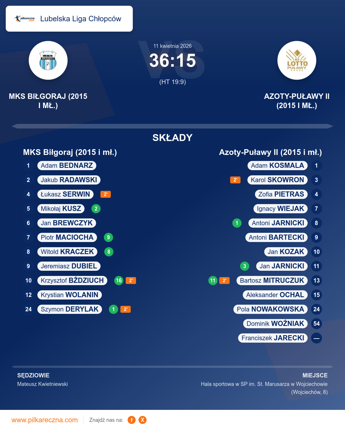 MKS Biłgoraj (2015 i mł.) 36–15 Azoty-Puławy II (2015 i mł.)