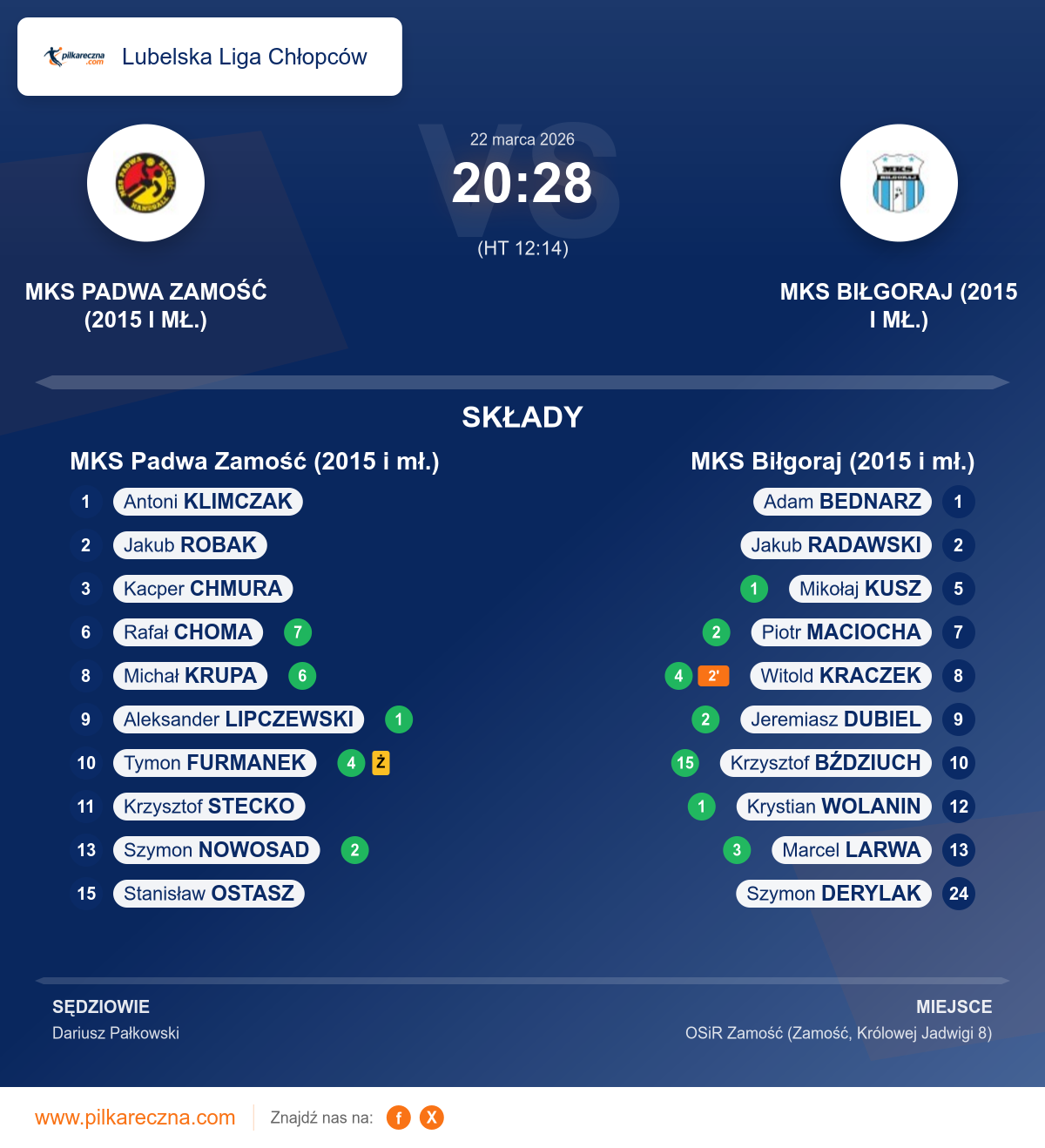 MKS Padwa Zamość (2015 i mł.) 20–28 MKS Biłgoraj (2015 i mł.)
