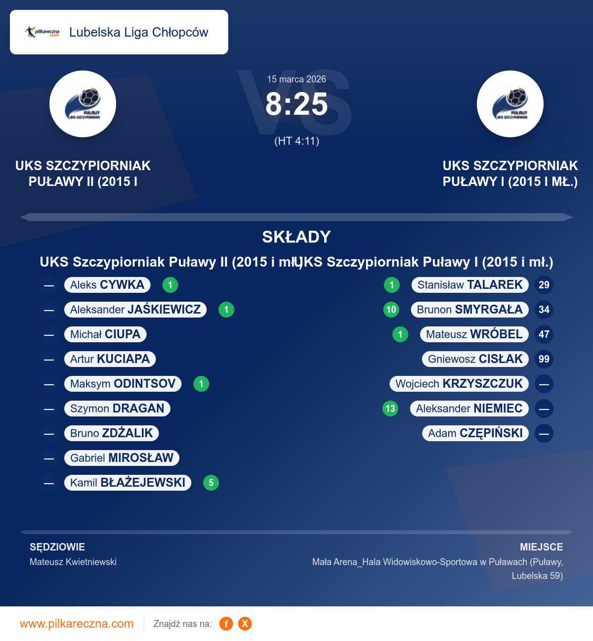 UKS Szczypiorniak Puławy II (2015 i mł.) 8–25 UKS Szczypiorniak Puławy I (2015 i mł.)