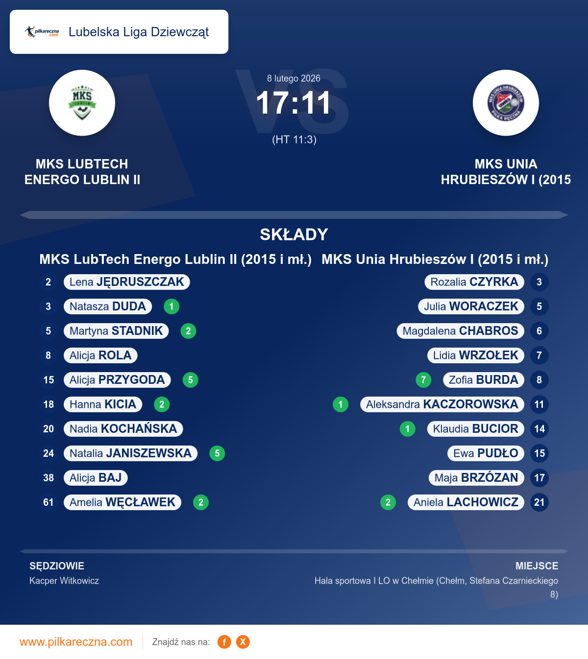 MKS LubTech Energo Lublin II (2015 i mł.) 17–11 MKS Unia Hrubieszów I (2015 i mł.)
