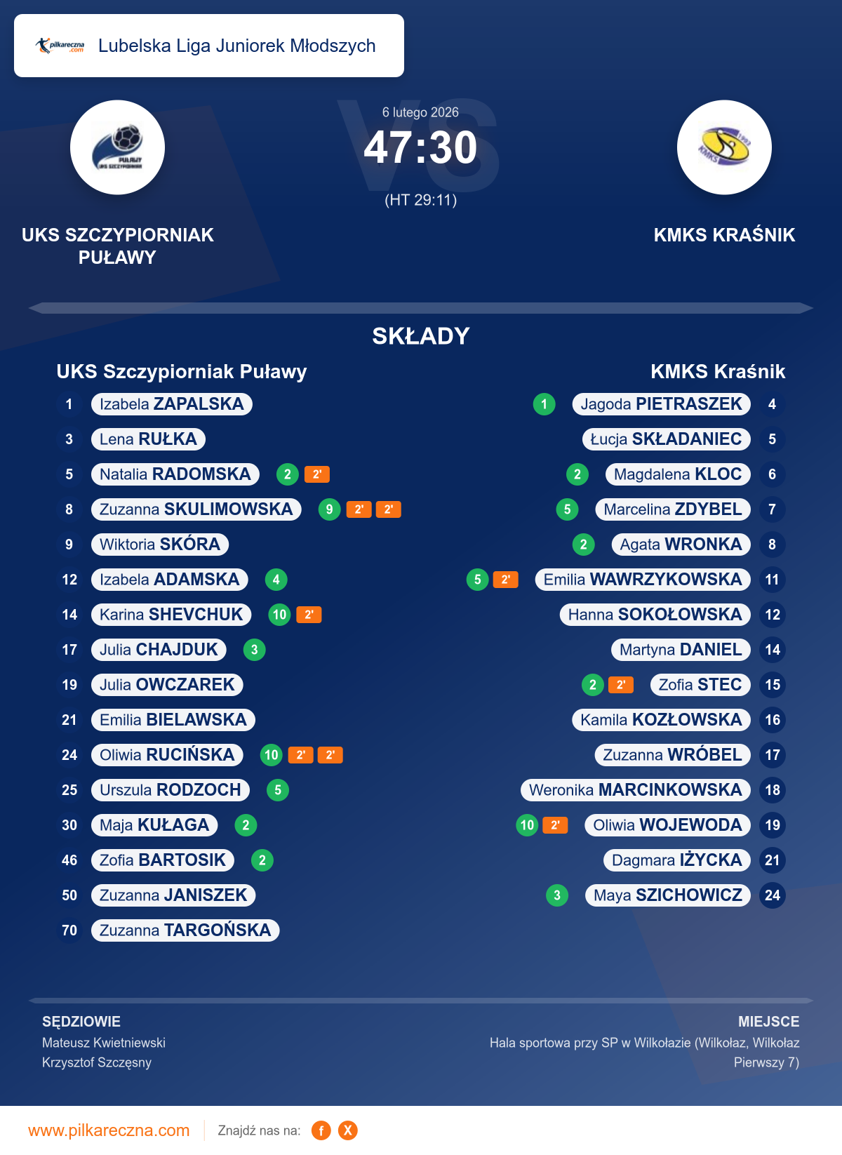 UKS Szczypiorniak Puławy 47–30 KMKS Kraśnik