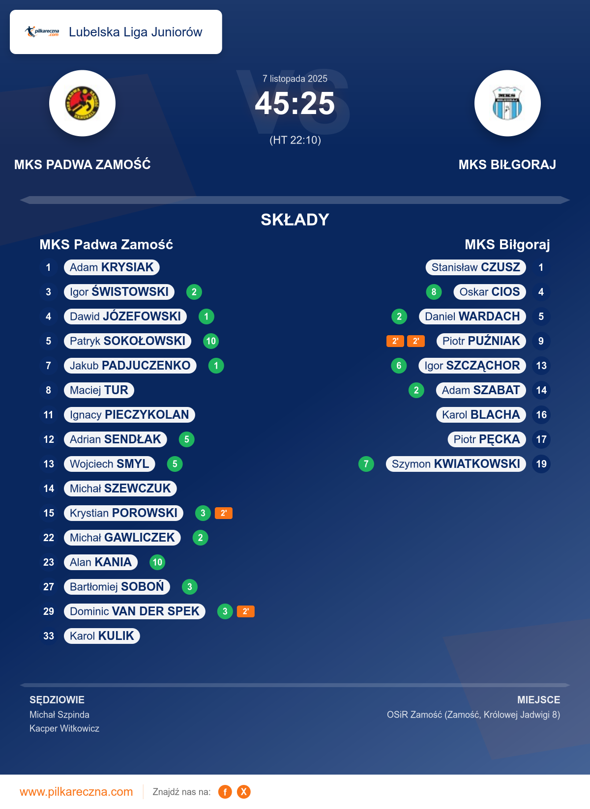 Sędziowali: Michał Szpinda, Kacper Witkowicz