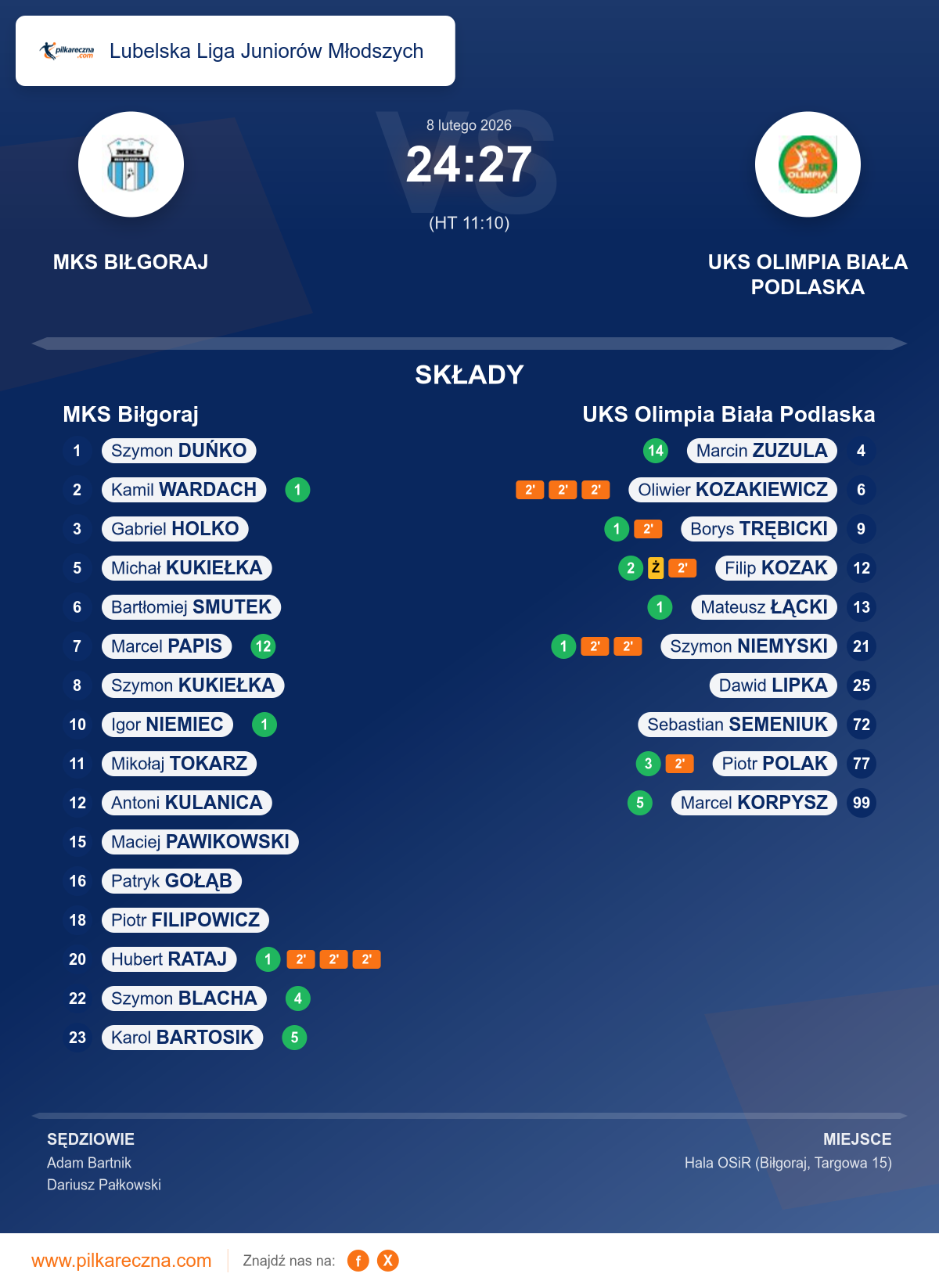 MKS Biłgoraj 24–27 UKS Olimpia Biała Podlaska