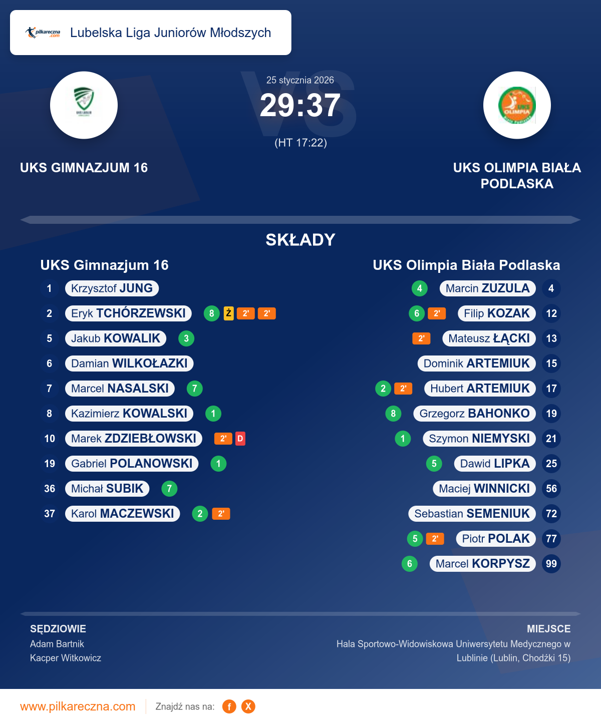 Sędziowali: Adam Bartnik, Kacper Witkowicz