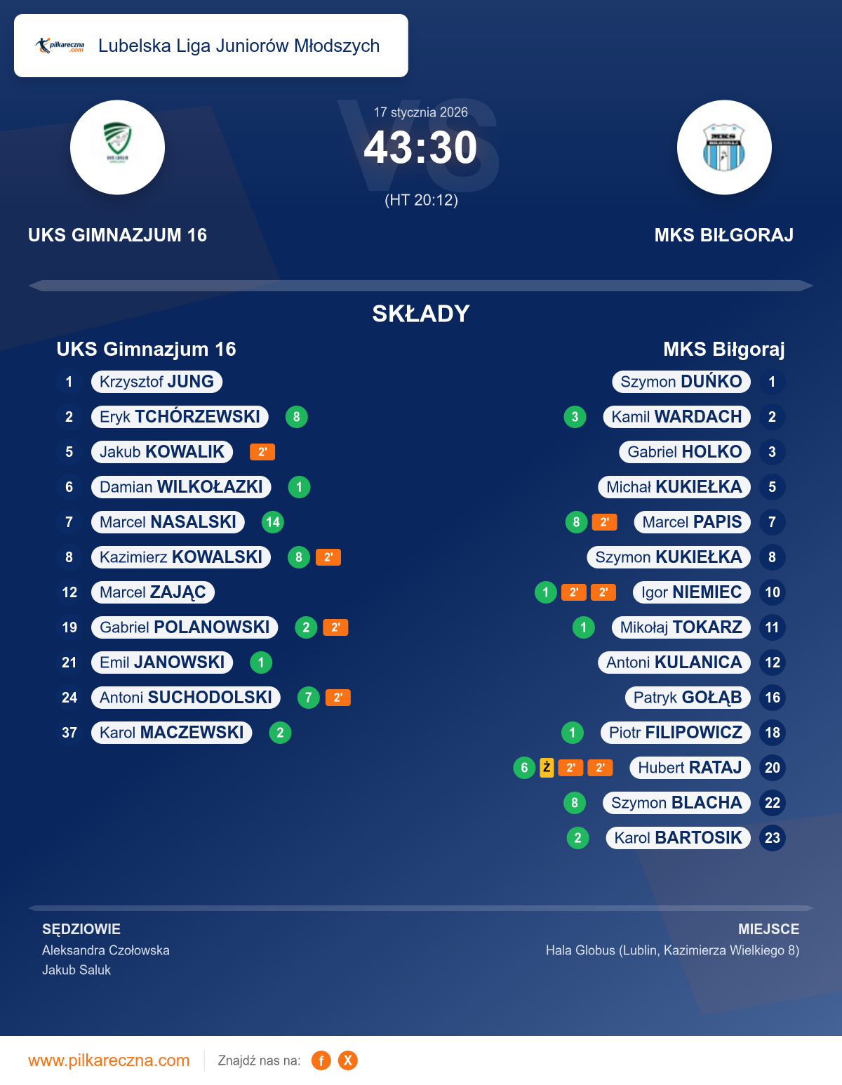 UKS Gimnazjum 16 43–30 MKS Biłgoraj