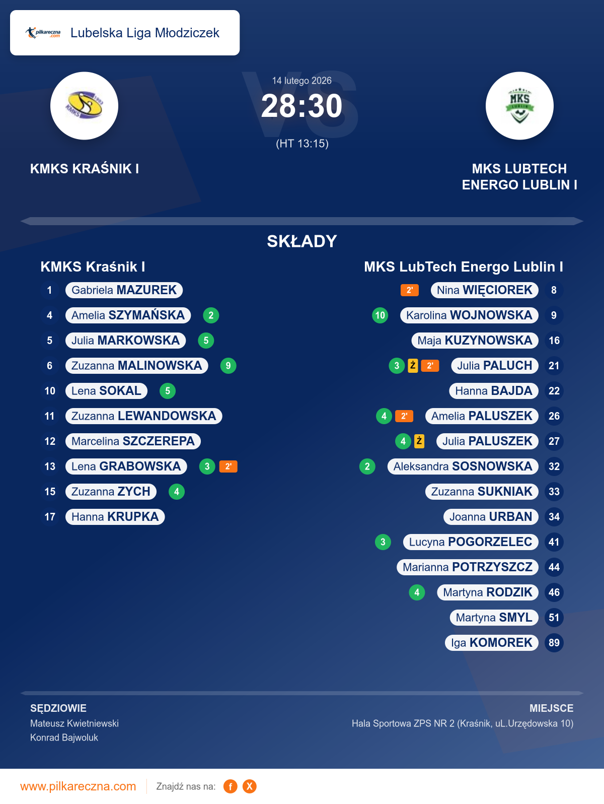Sędziowali: Mateusz Kwietniewski, Konrad Bajwoluk