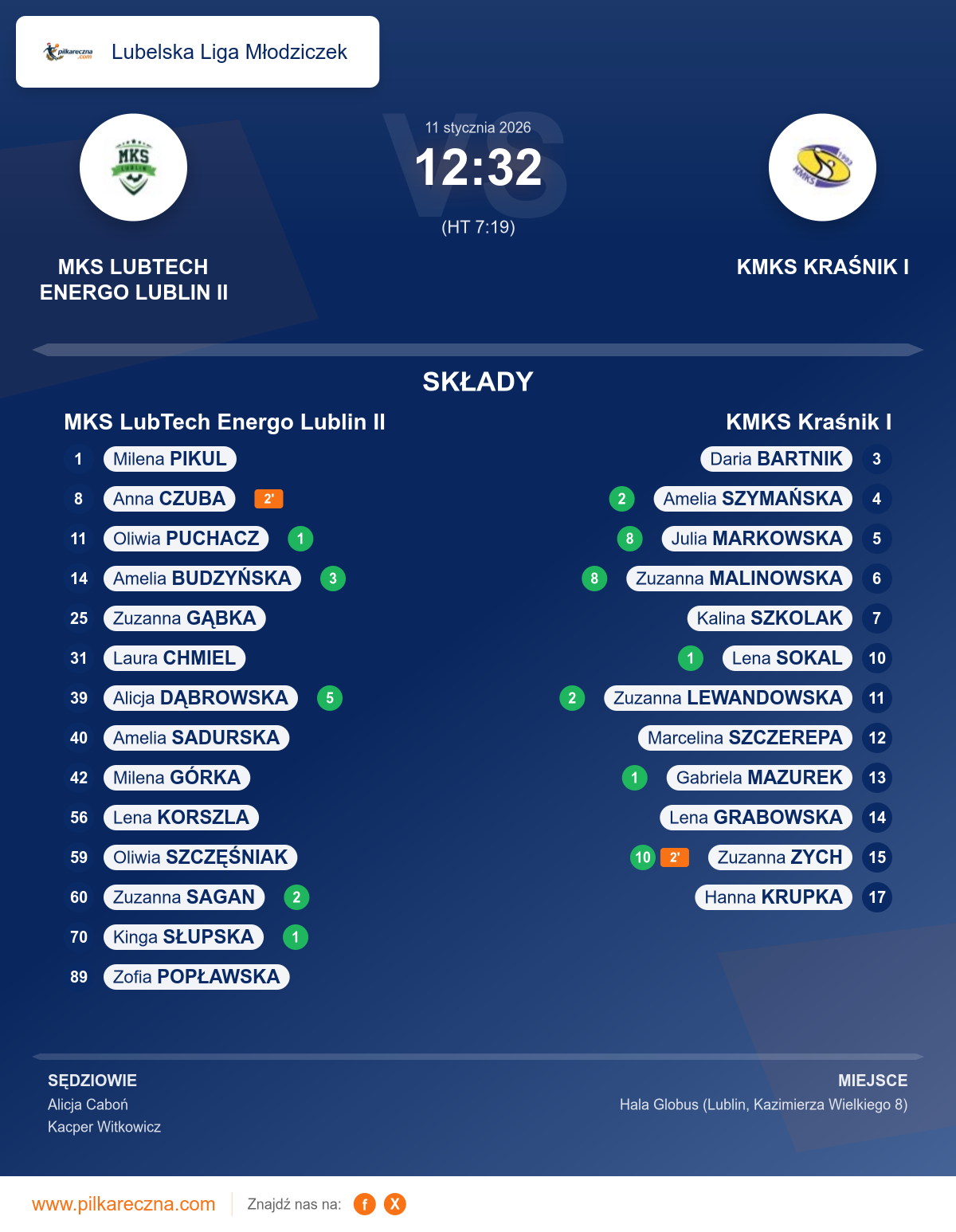 Zawodnicy: Zuzanna Zych (10), Julia Markowska (8), Zuzanna Malinowska (8), Amelia Szymańska (2), Zuzanna Lewandowska (2), Lena Sokal (1), Daria Bartnik, Hanna Krupka, Kalina Szkolak, Lena Grabowska, Marcelina Szczerepa