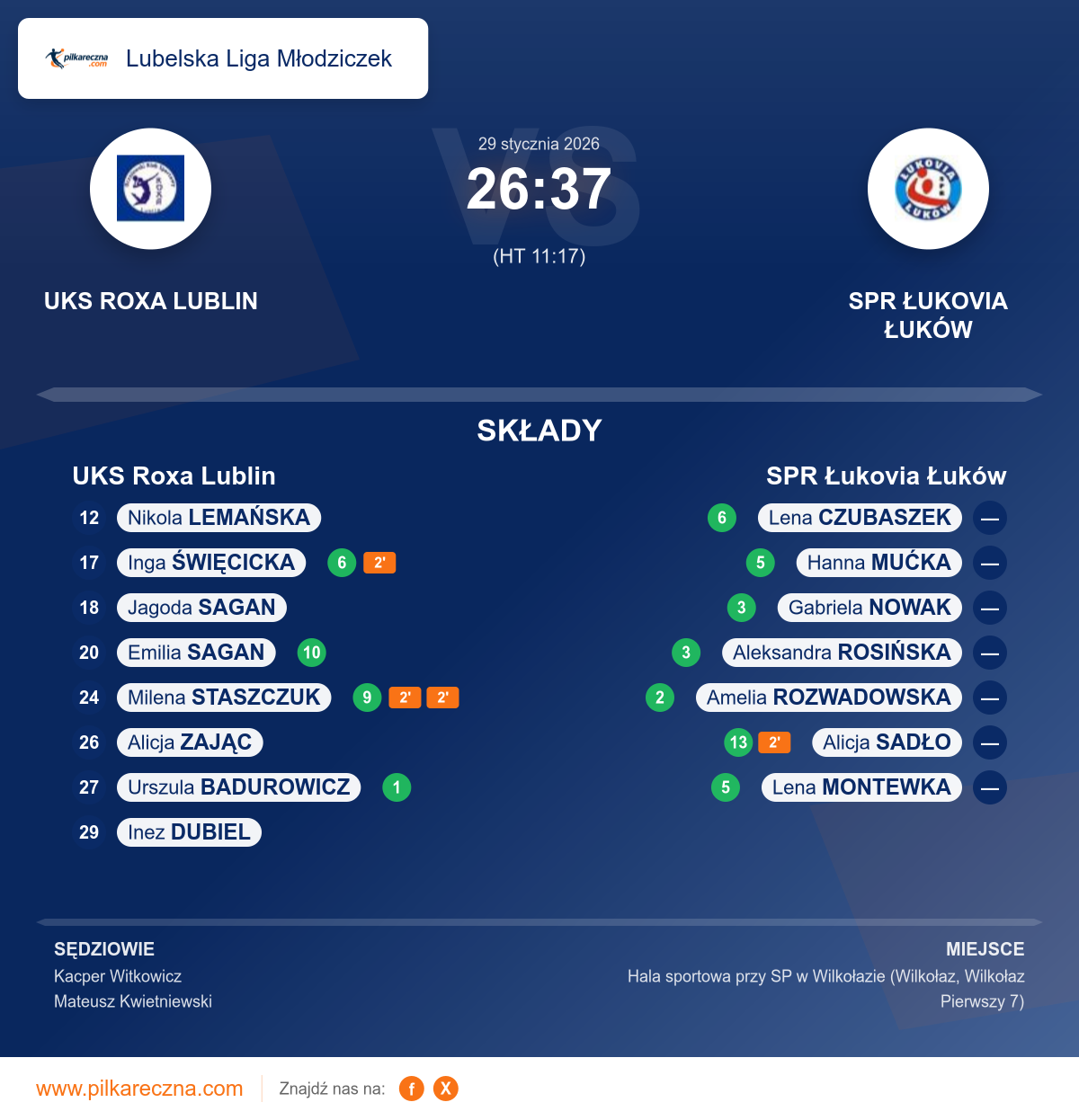UKS Roxa Lublin 26–37 SPR Łukovia Łuków