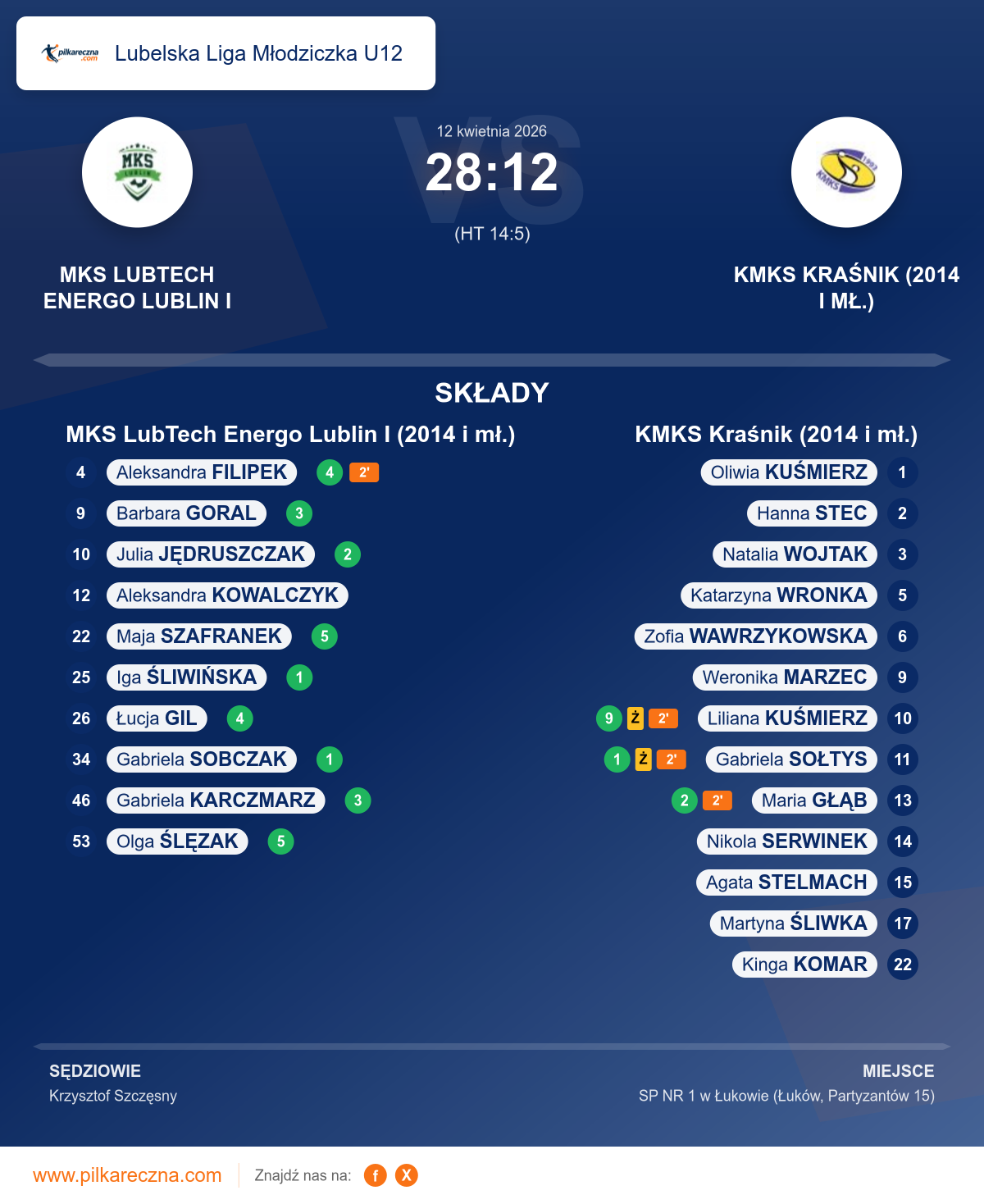 MKS LubTech Energo Lublin I (2014 i mł.) 28–12 KMKS Kraśnik (2014 i mł.)