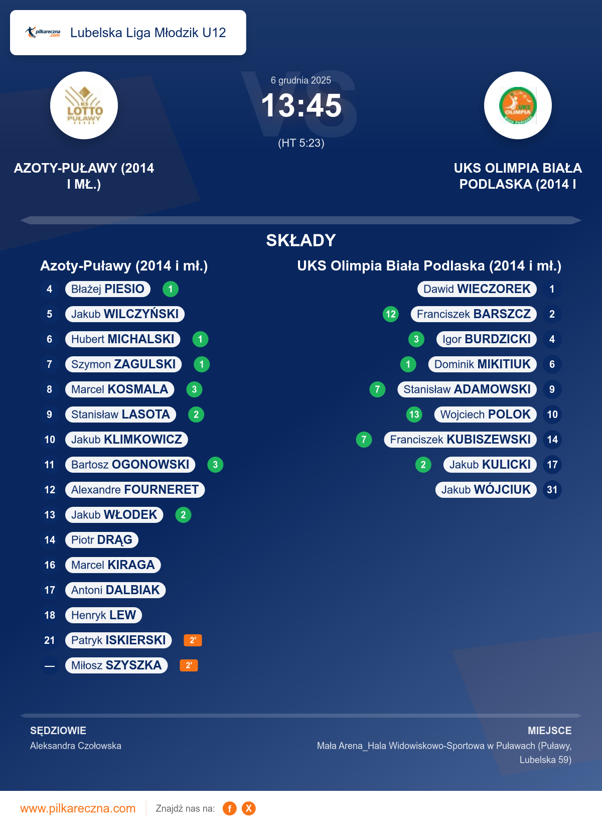 Azoty-Puławy (2014 i mł.) — UKS Olimpia Biała Podlaska (2014 i mł.)