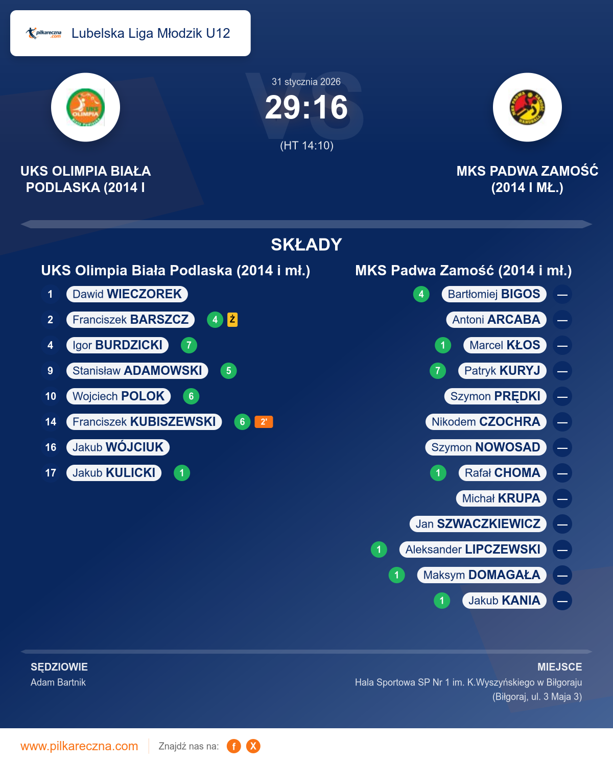 UKS Olimpia Biała Podlaska (2014 i mł.) 29–16 MKS Padwa Zamość (2014 i mł.)