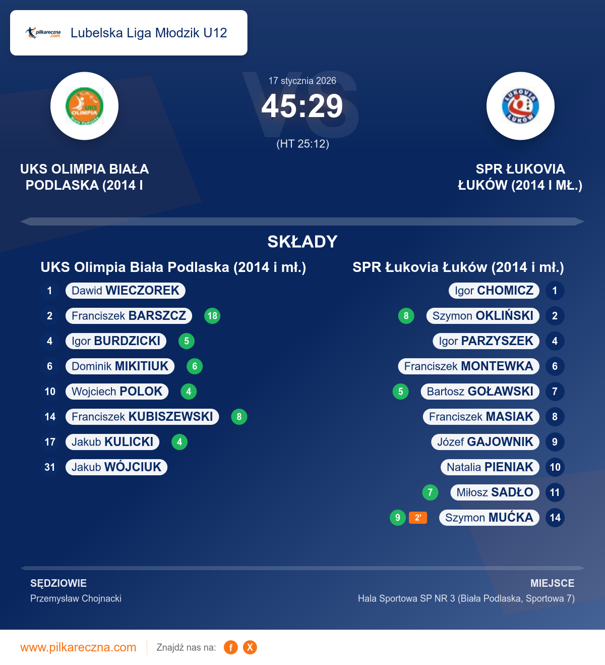 UKS Olimpia Biała Podlaska (2014 i mł.) 45–29 SPR Łukovia Łuków (2014 i mł.)