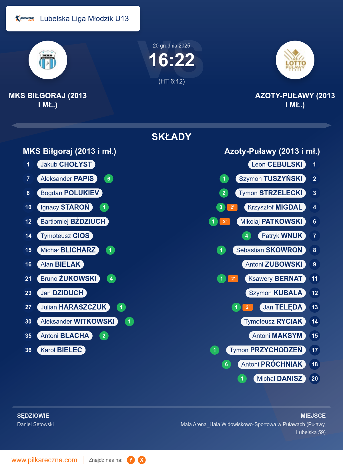 MKS Biłgoraj (2013 i mł.) 16–22 Azoty-Puławy (2013 i mł.)