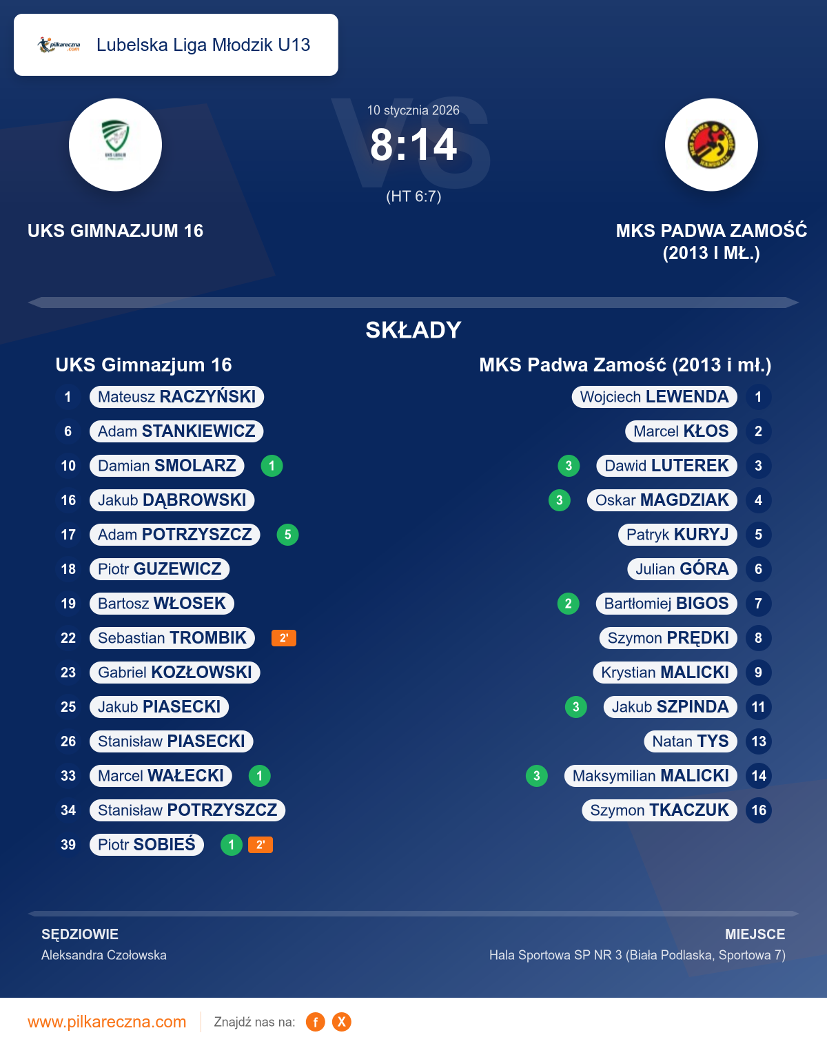 UKS Gimnazjum 16 8–14 MKS Padwa Zamość (2013 i mł.)