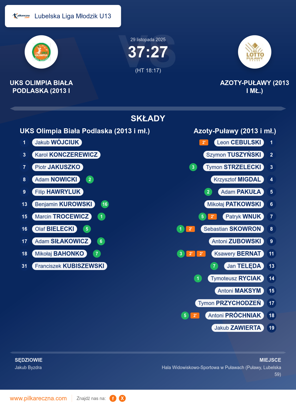 UKS Olimpia Biała Podlaska (2013 i mł.) 37–27 Azoty-Puławy (2013 i mł.)