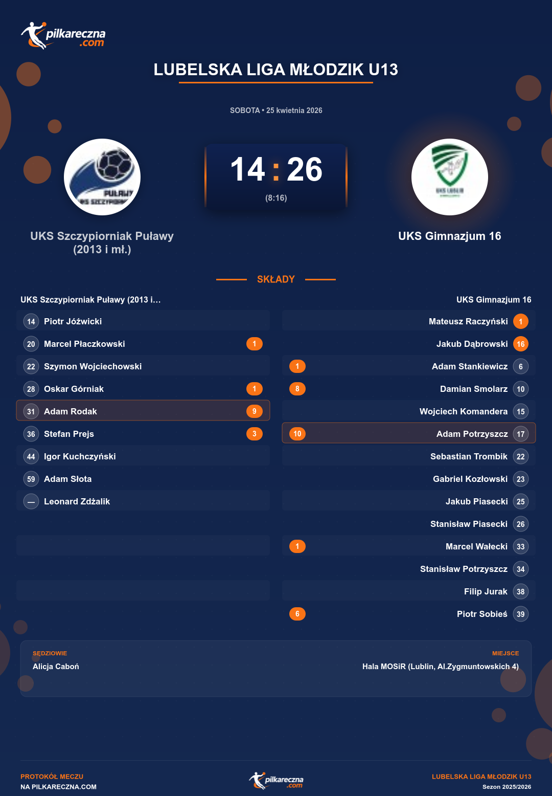 UKS Szczypiorniak Puławy (2013 i mł.) 14–26 UKS Gimnazjum 16
