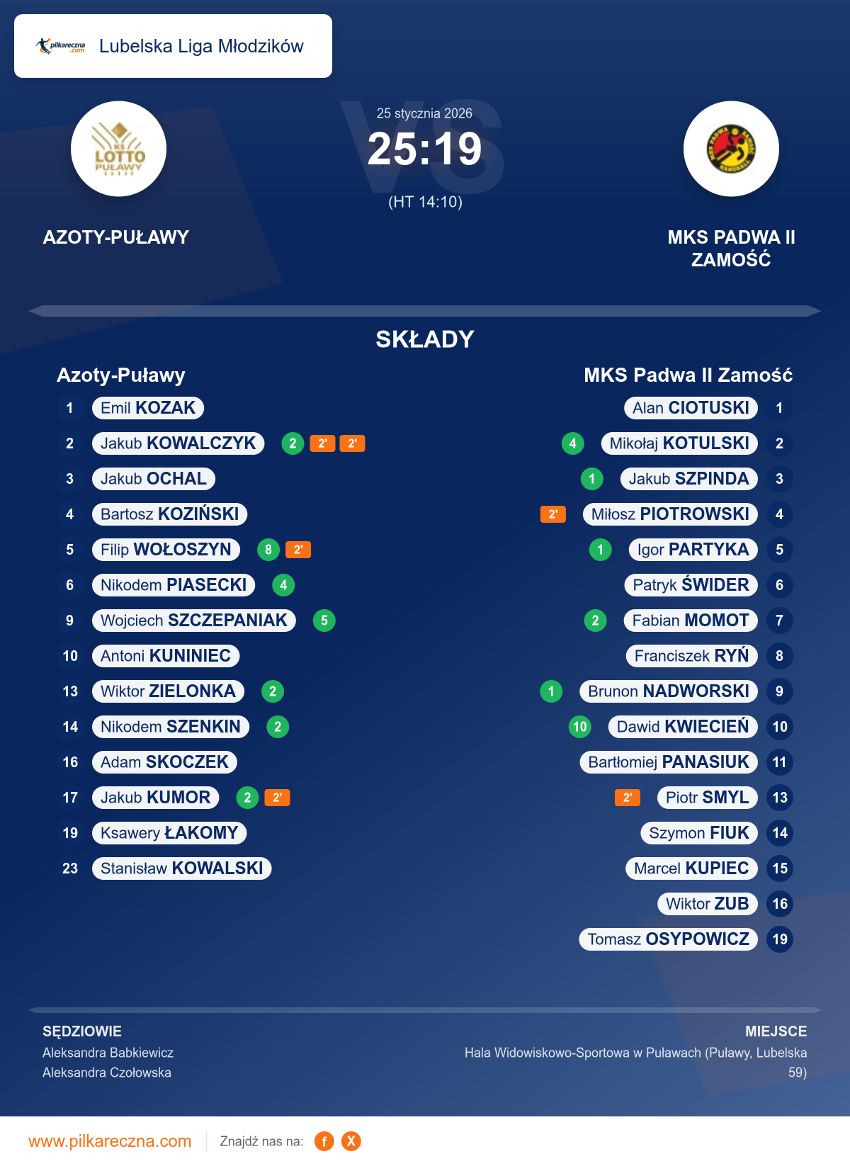 Wynik: 25–19 (HT 14–10)