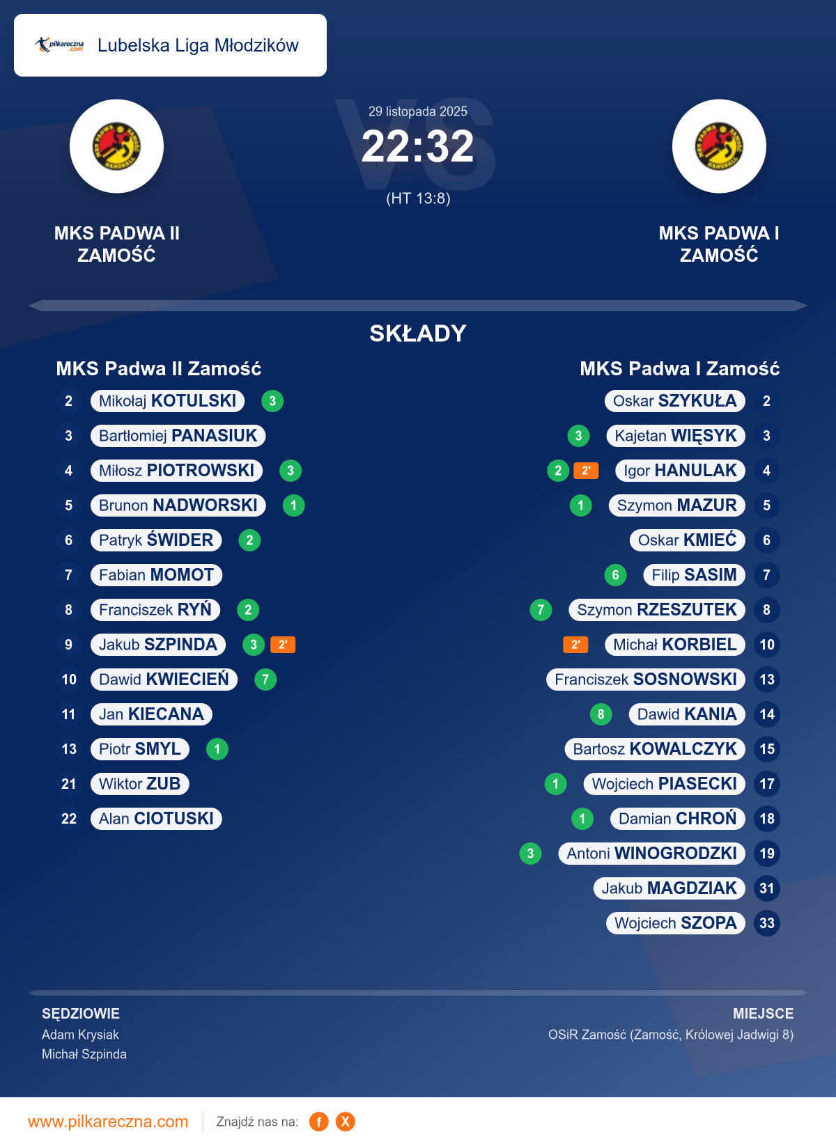 Sędziowali: Adam Krysiak, Michał Szpinda