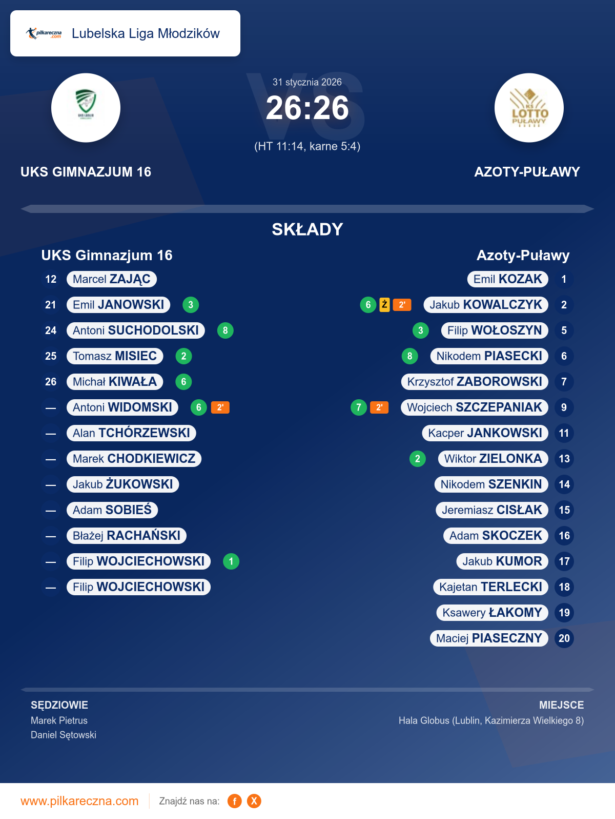 UKS Gimnazjum 16 26–26 Azoty-Puławy