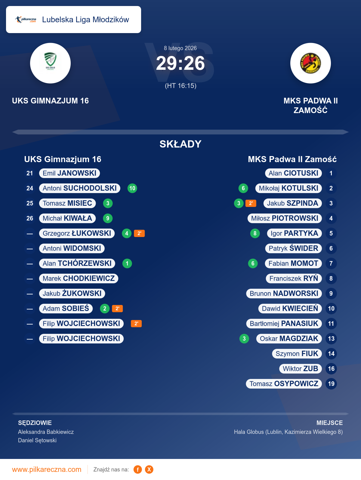 UKS Gimnazjum 16 29–26 MKS Padwa II Zamość