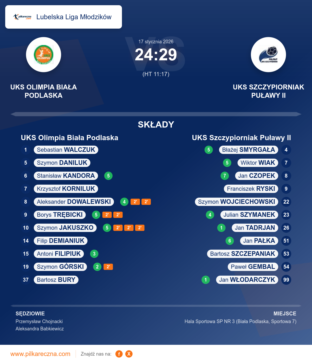 UKS Olimpia Biała Podlaska 24–29 UKS Szczypiorniak Puławy II