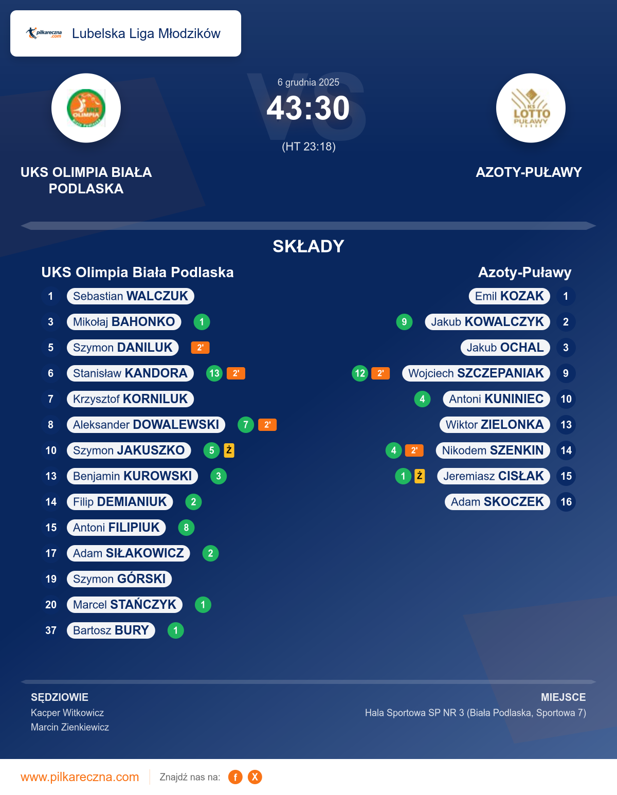 UKS Olimpia Biała Podlaska 43–30 Azoty-Puławy