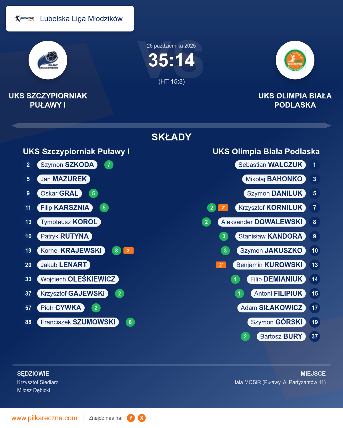 UKS Szczypiorniak Puławy I 35–14 UKS Olimpia Biała Podlaska