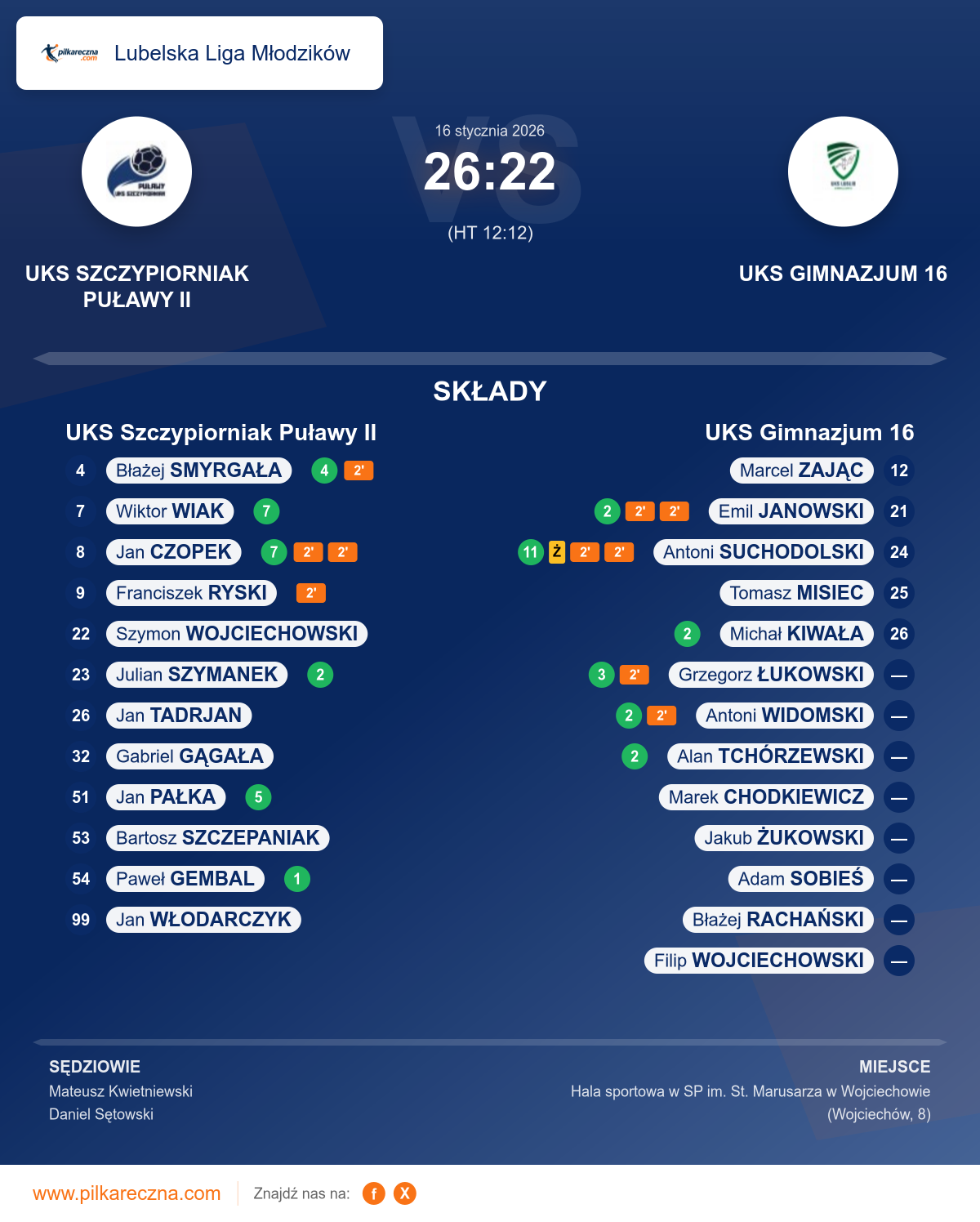 UKS Szczypiorniak Puławy II 26–22 UKS Gimnazjum 16