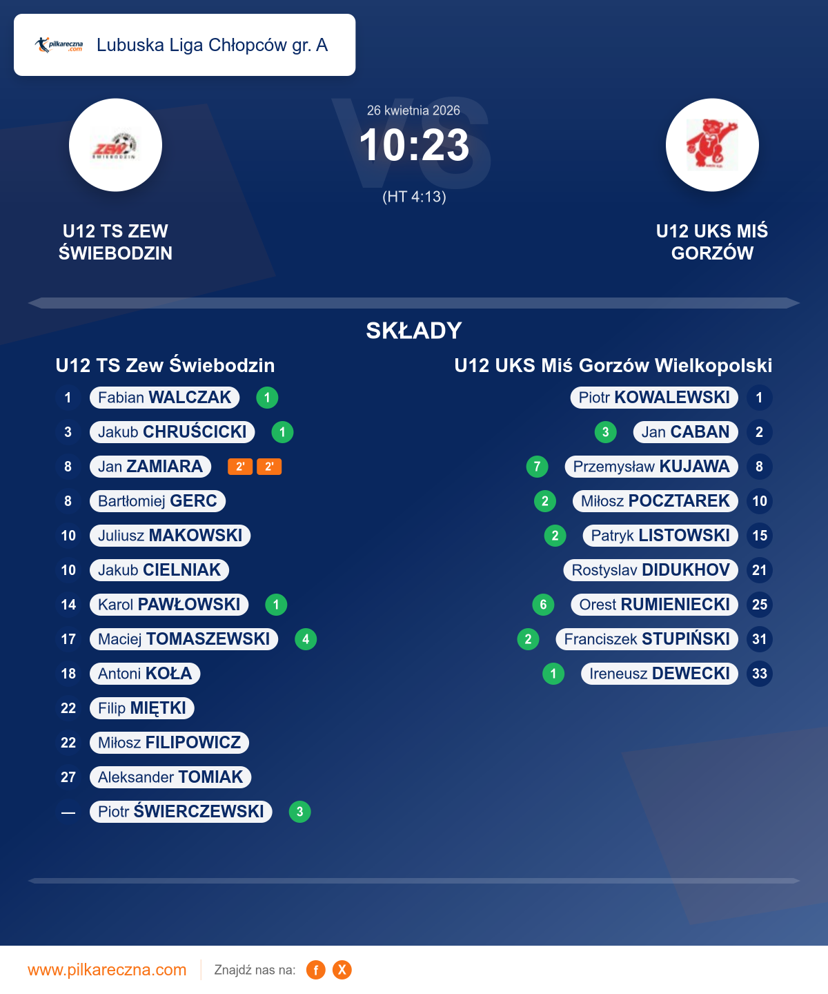 U12 TS Zew Świebodzin 10–23 U12 UKS Miś Gorzów Wielkopolski