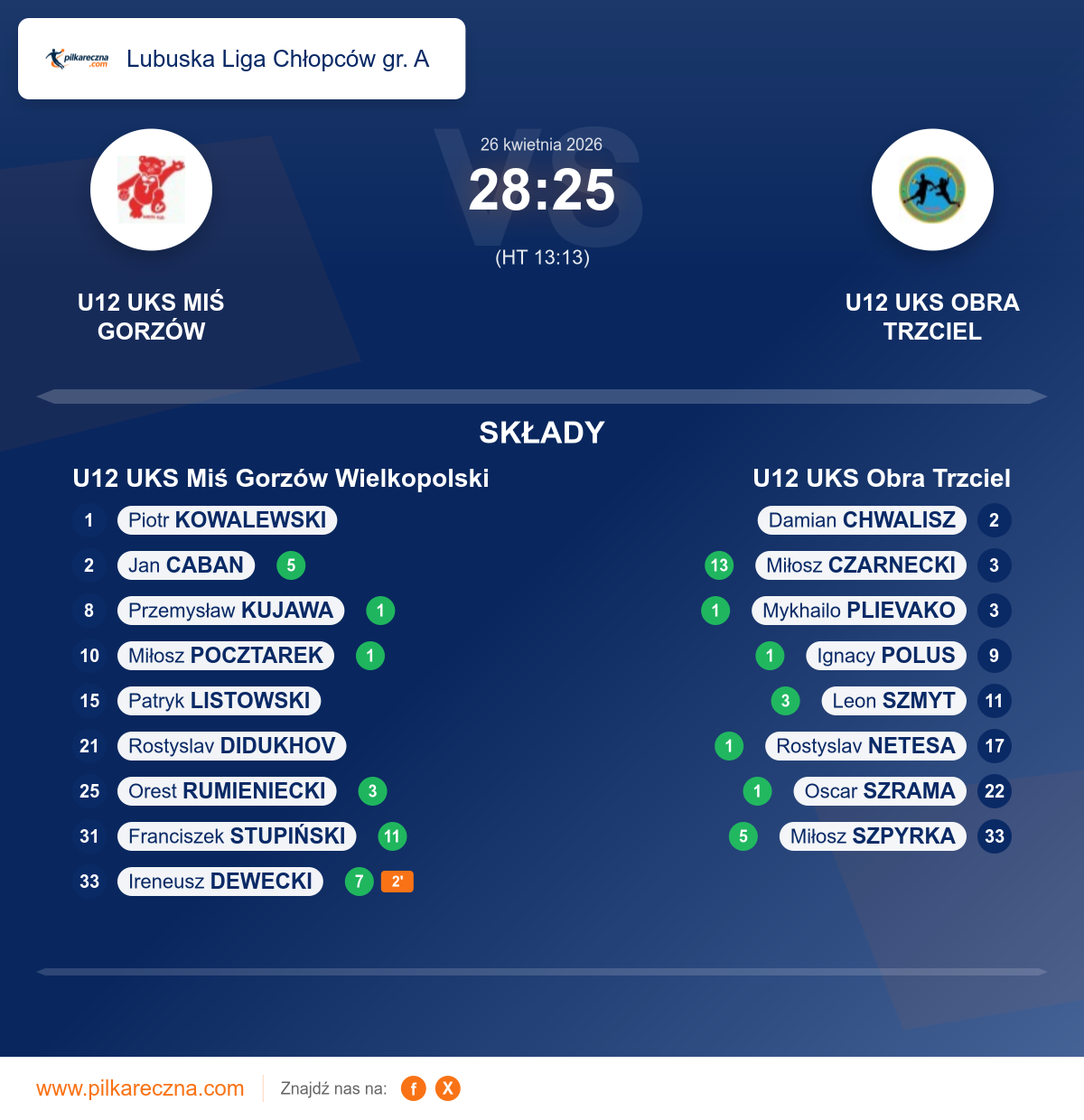 U12 UKS Miś Gorzów Wielkopolski 28–25 U12 UKS Obra Trzciel