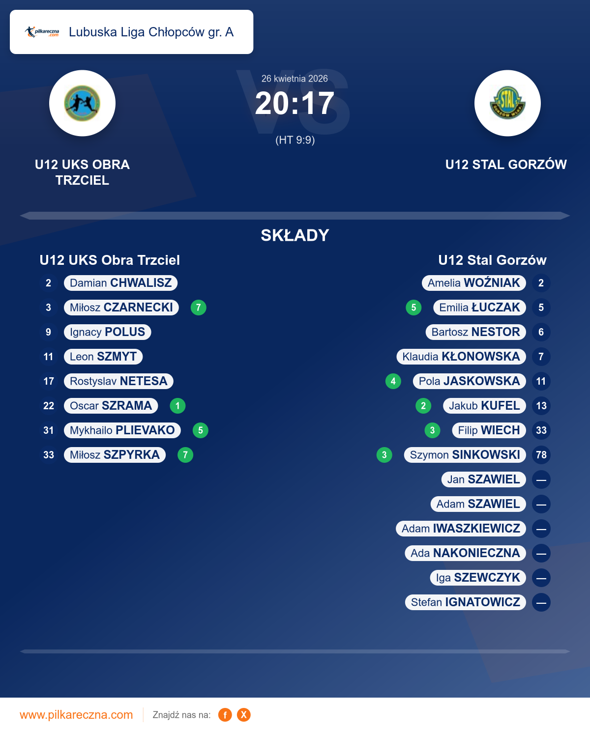 U12 UKS Obra Trzciel 20–17 U12 Stal Gorzów