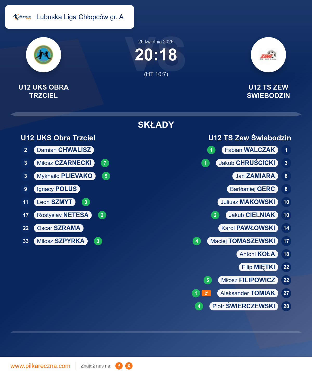 U12 UKS Obra Trzciel 20–18 U12 TS Zew Świebodzin