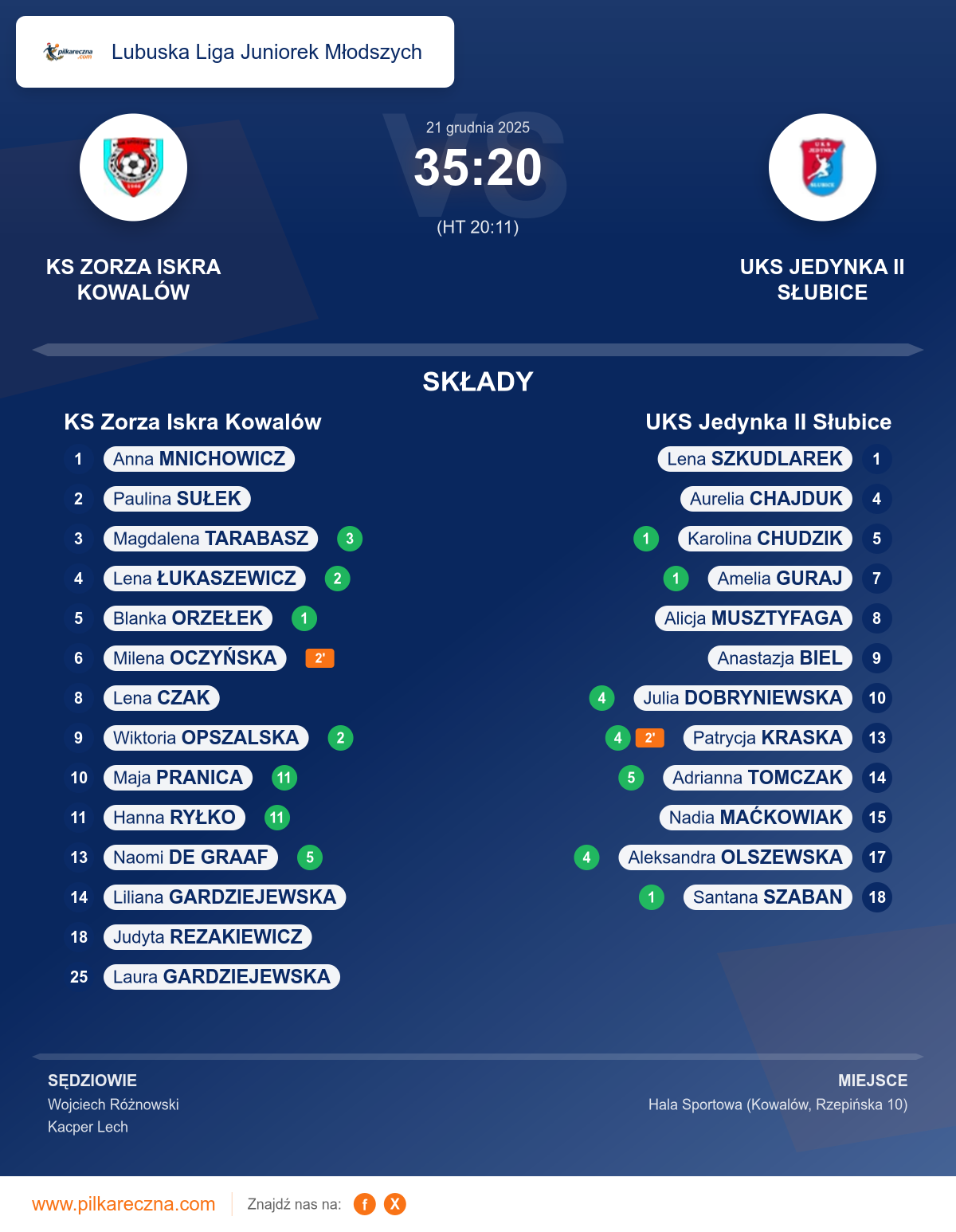 KS Zorza Iskra Kowalów 35–20 UKS Jedynka II Słubice