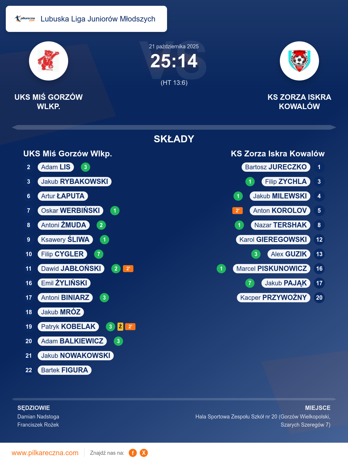 UKS Miś Gorzów Wlkp. 25–14 KS Zorza Iskra Kowalów