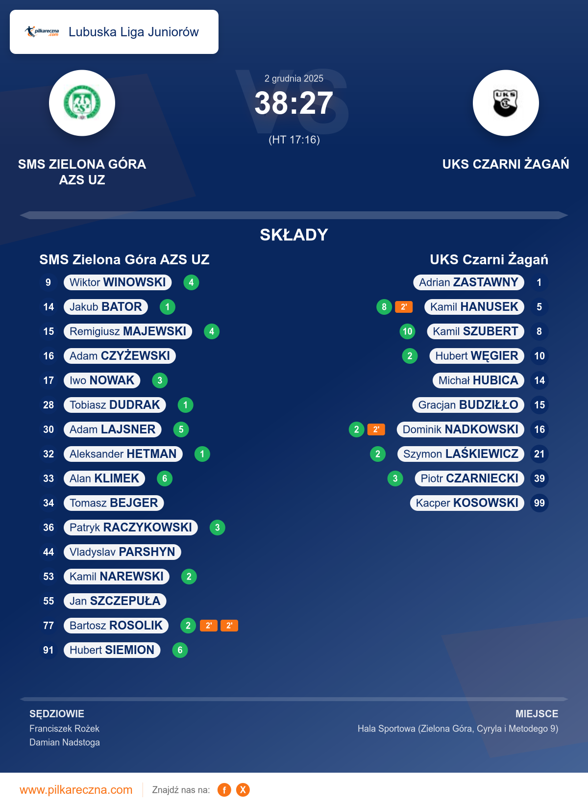 SMS Zielona Góra AZS UZ 38–27 UKS Czarni Żagań