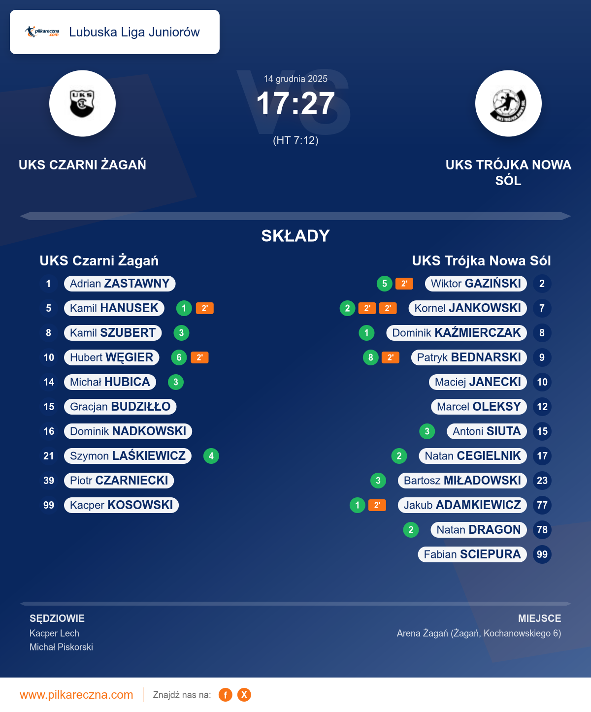 Bramkarze: Adrian Zastawny, Kacper Kosowski