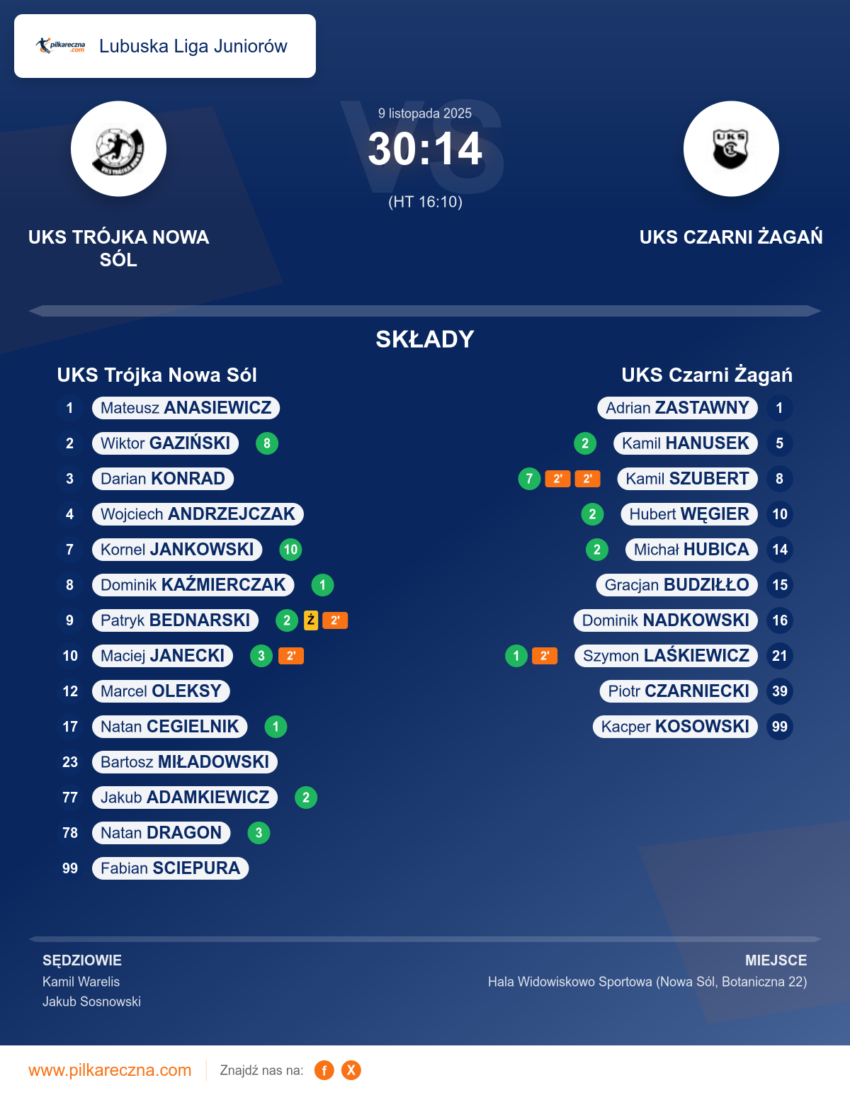 UKS Trójka Nowa Sól 30–14 UKS Czarni Żagań