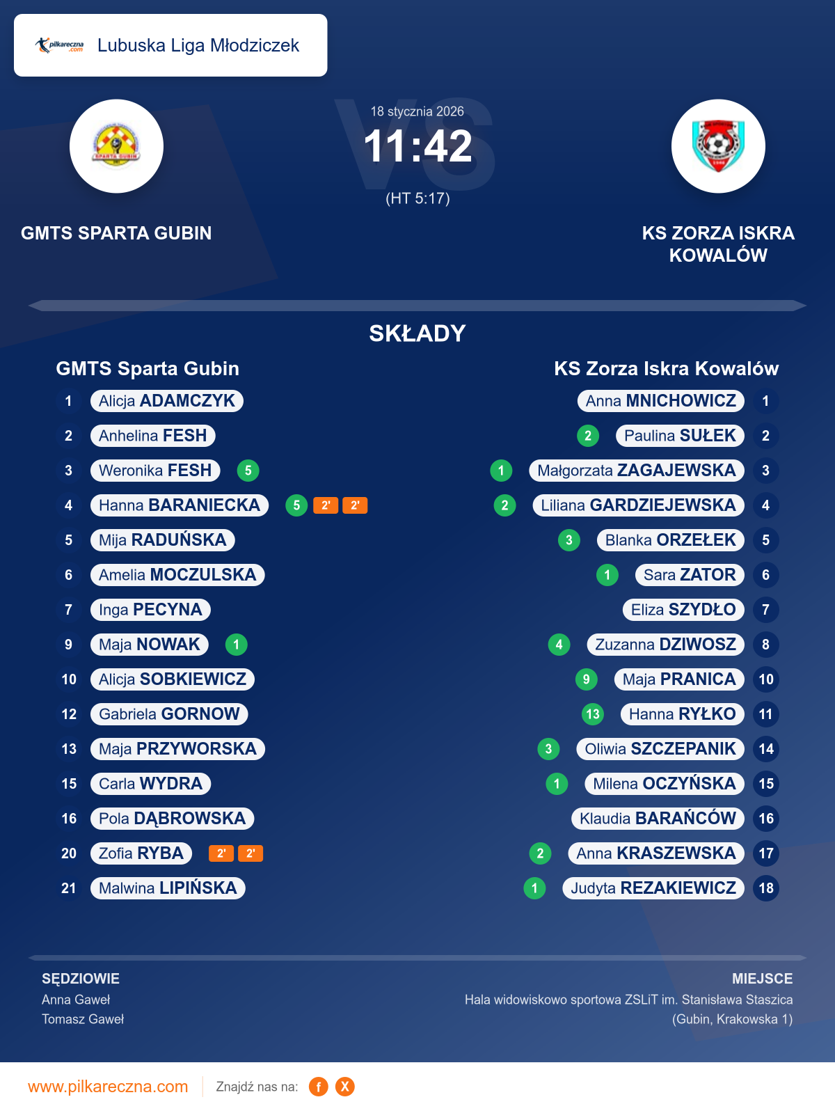 GMTS Sparta Gubin 11–42 KS Zorza Iskra Kowalów