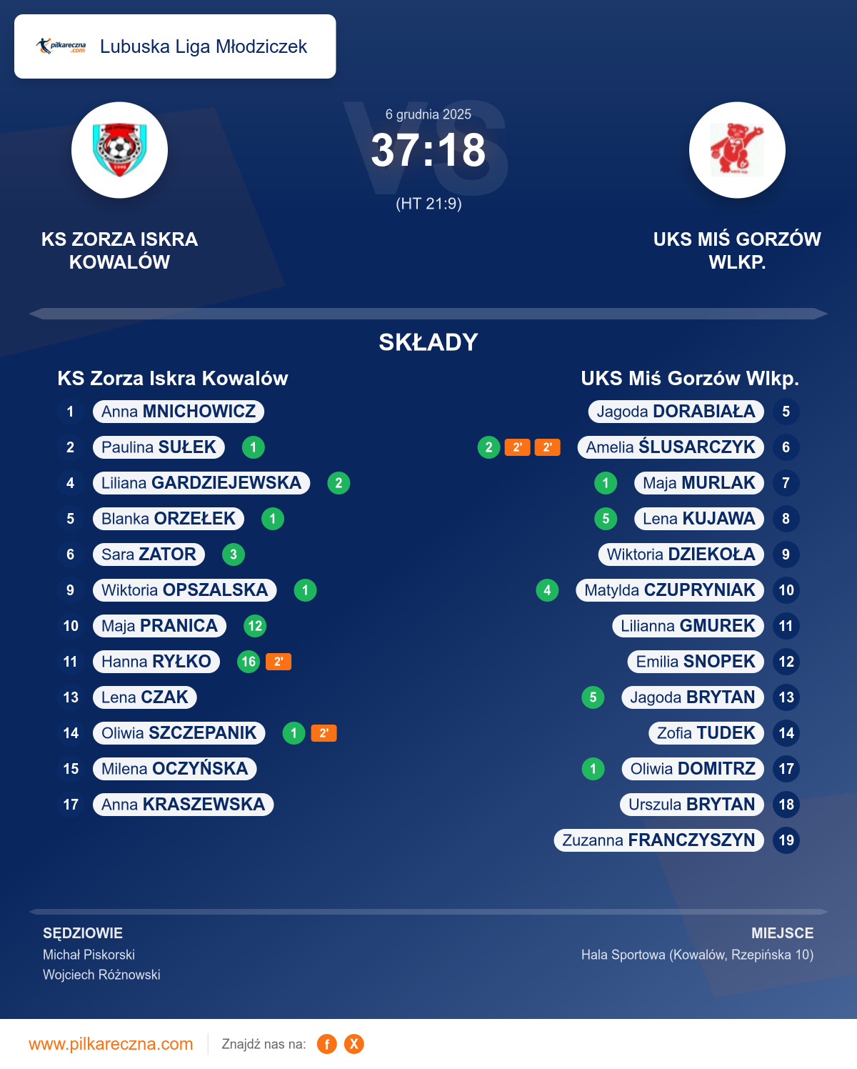 KS Zorza Iskra Kowalów — UKS Miś Gorzów Wlkp.